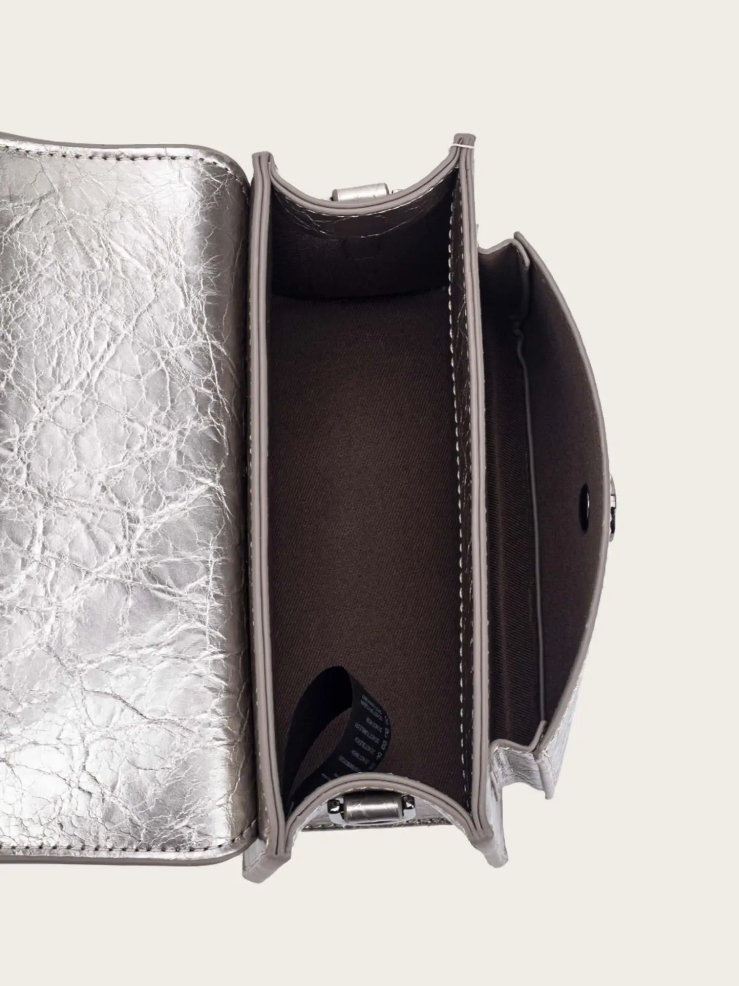 Renei Shiny Structure fra Hvisk. En søt liten skulderveske, i vegansk materiale. Den har et stort rom inni, samt et lite utenpå. Vesken har lang justerbare skulderreim.