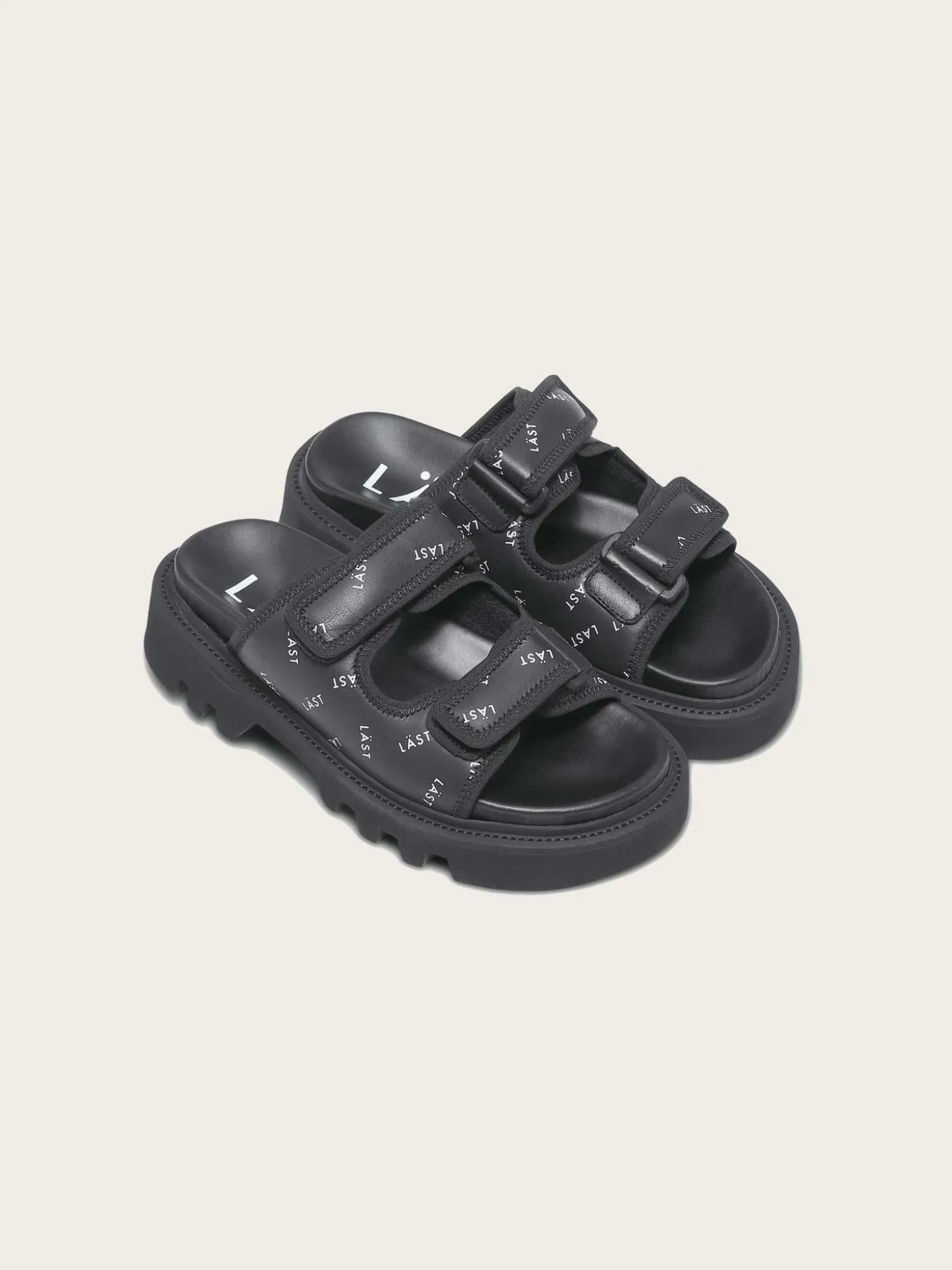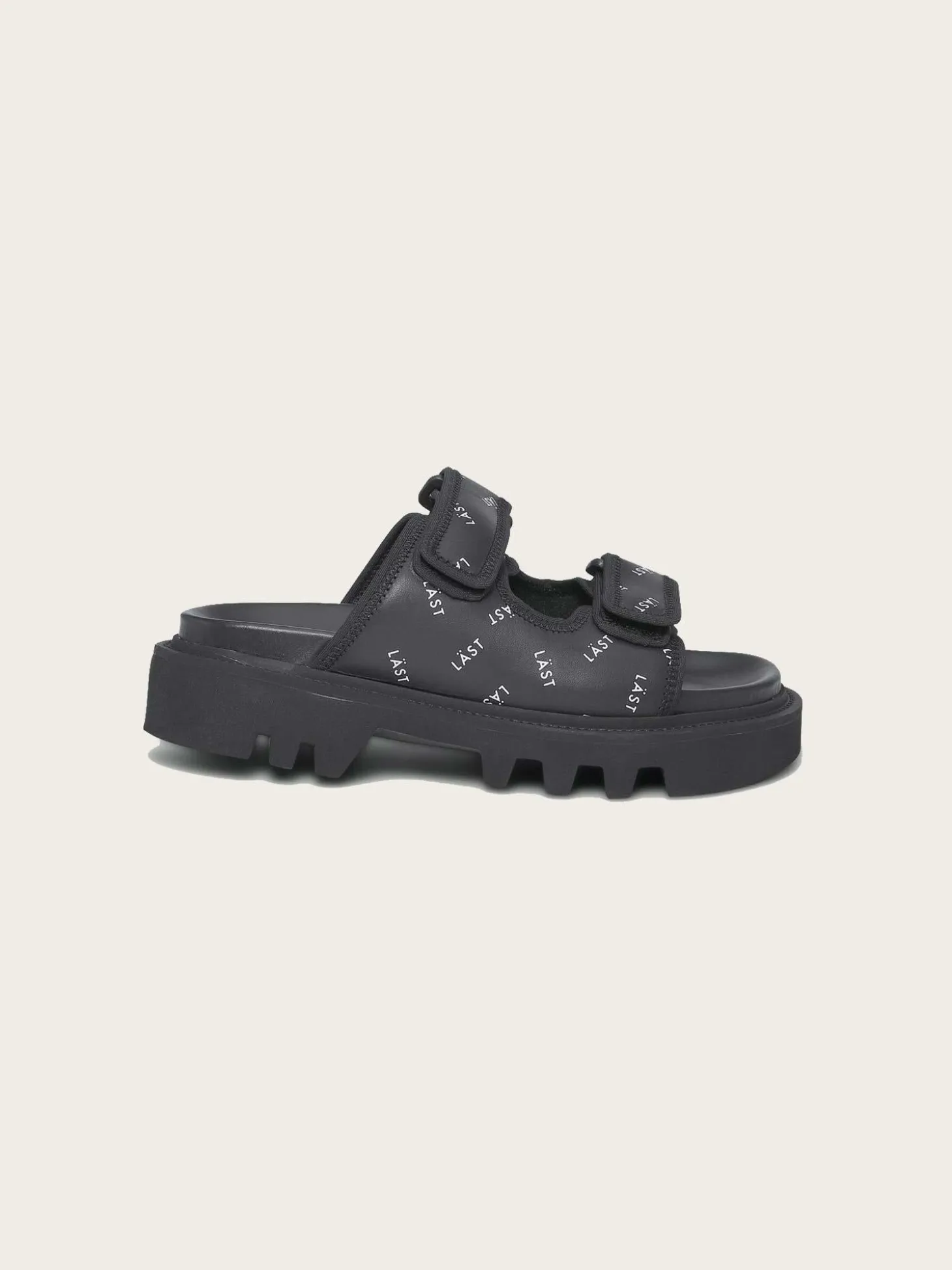 Tempo Sandal fra Läst. En kul og chunky sandal, på den velkjente Läst-sålen. Den har to reimer som lukkes med borrelås, og dekorativ logo over det hele. Så fin!