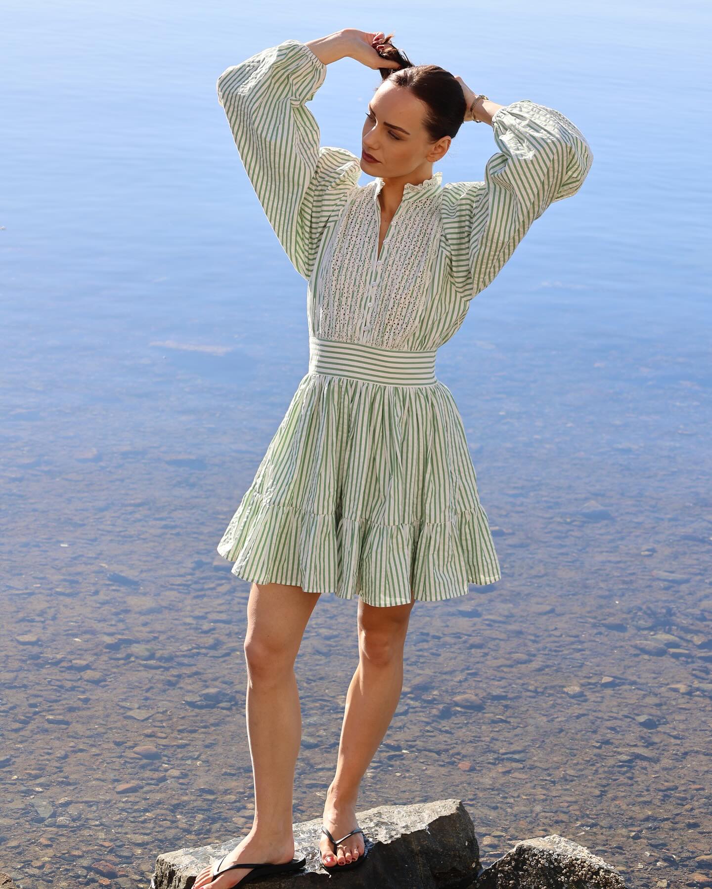 Striped Collared Midi Dress – Black