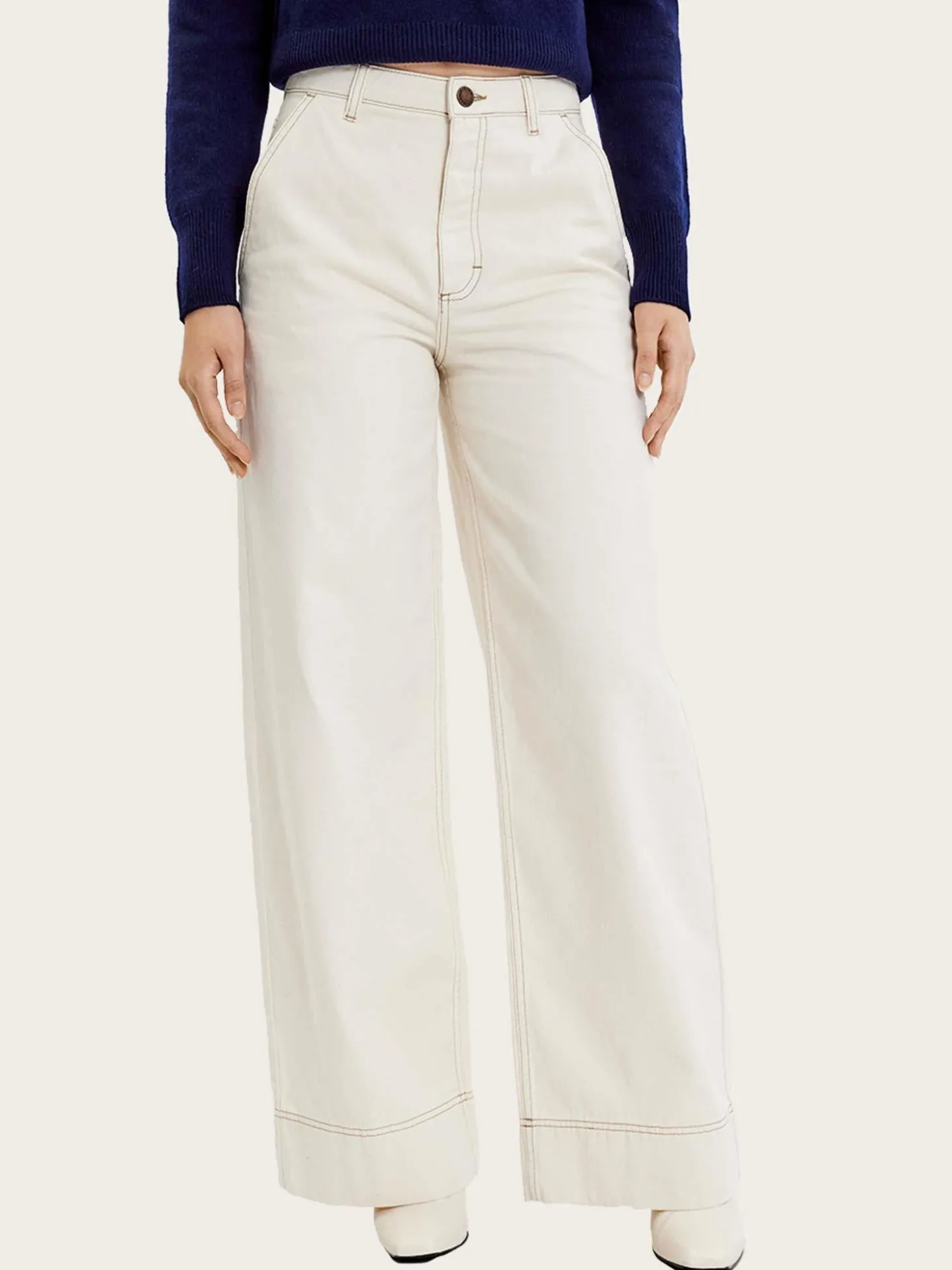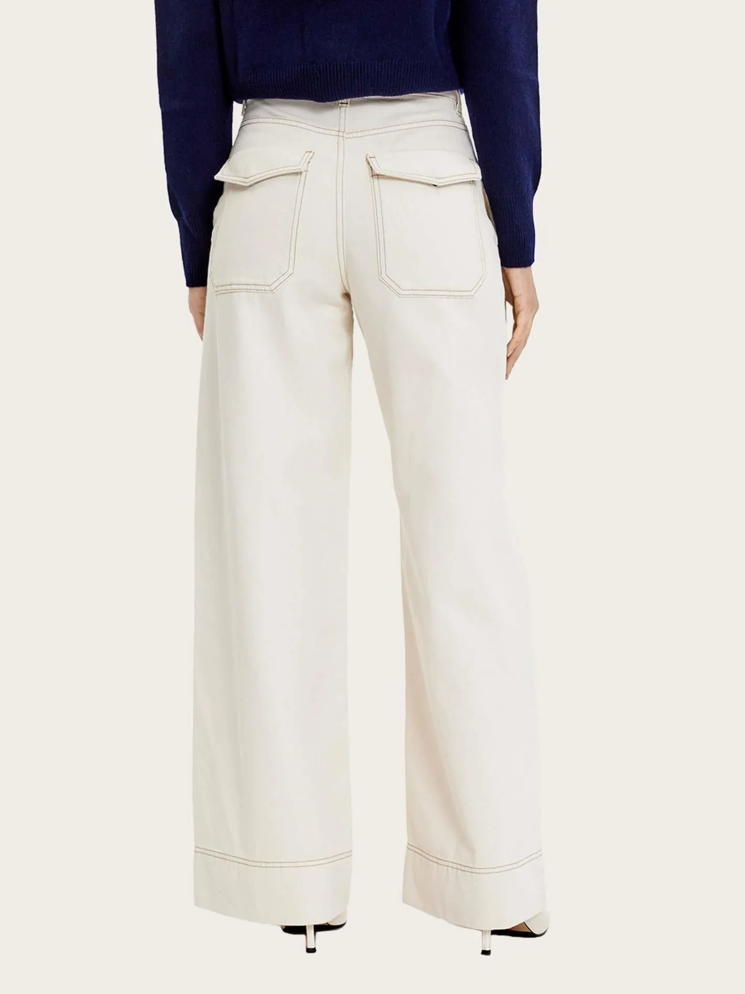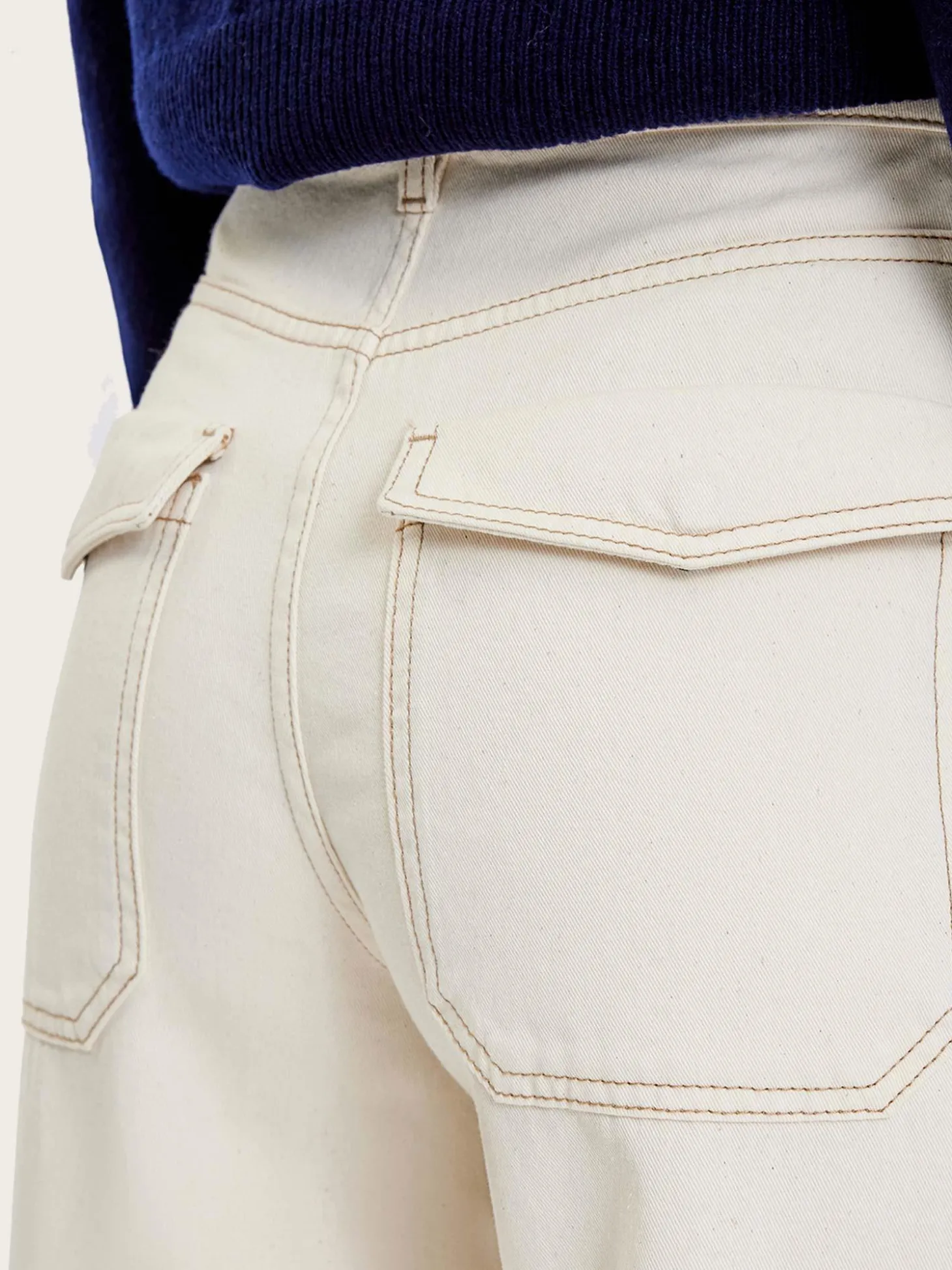En kul jeans i en avslappet passform. Den har vide lange ben, medium høyde på livet og baklommer med flapp.