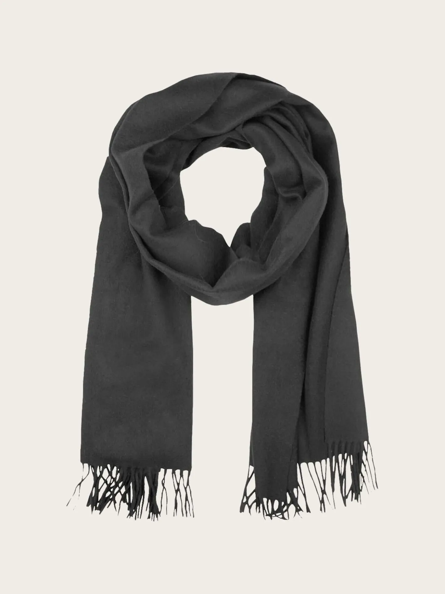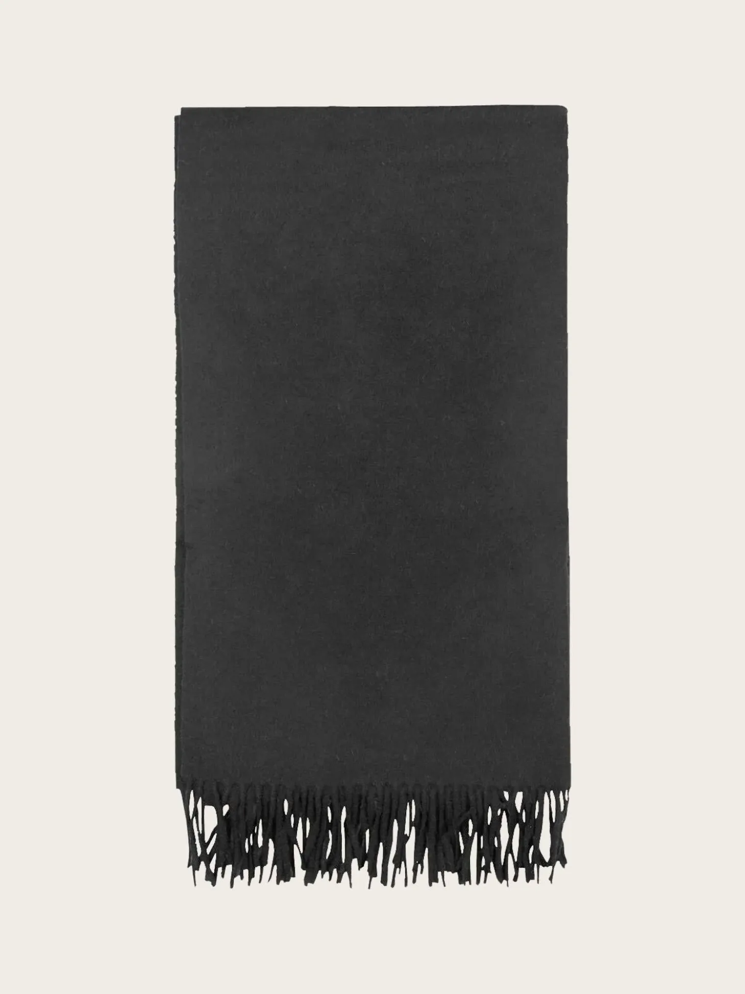 Et stort skjerf i en luksuriøs blanding av kashmir og ull, med frynser på endene.