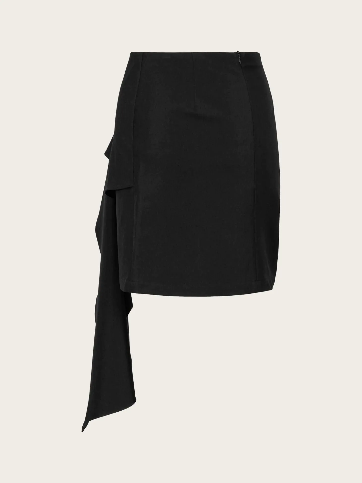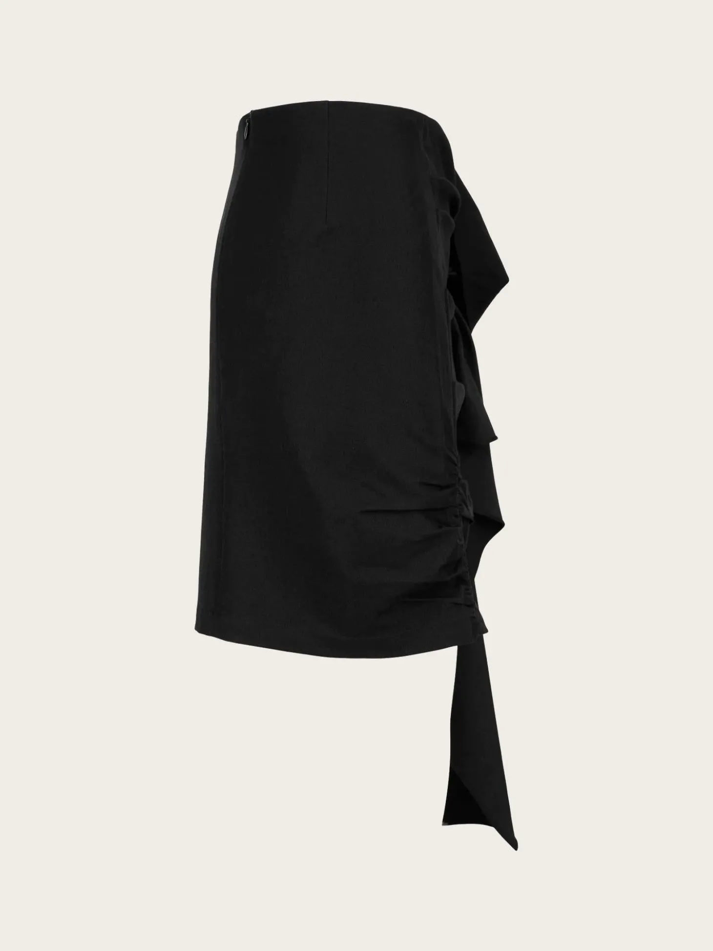 Et nydelig skjørt med draperinger og dekorativ lang sløyfe i front. Så kult! Det lukkes med glidelås bak.