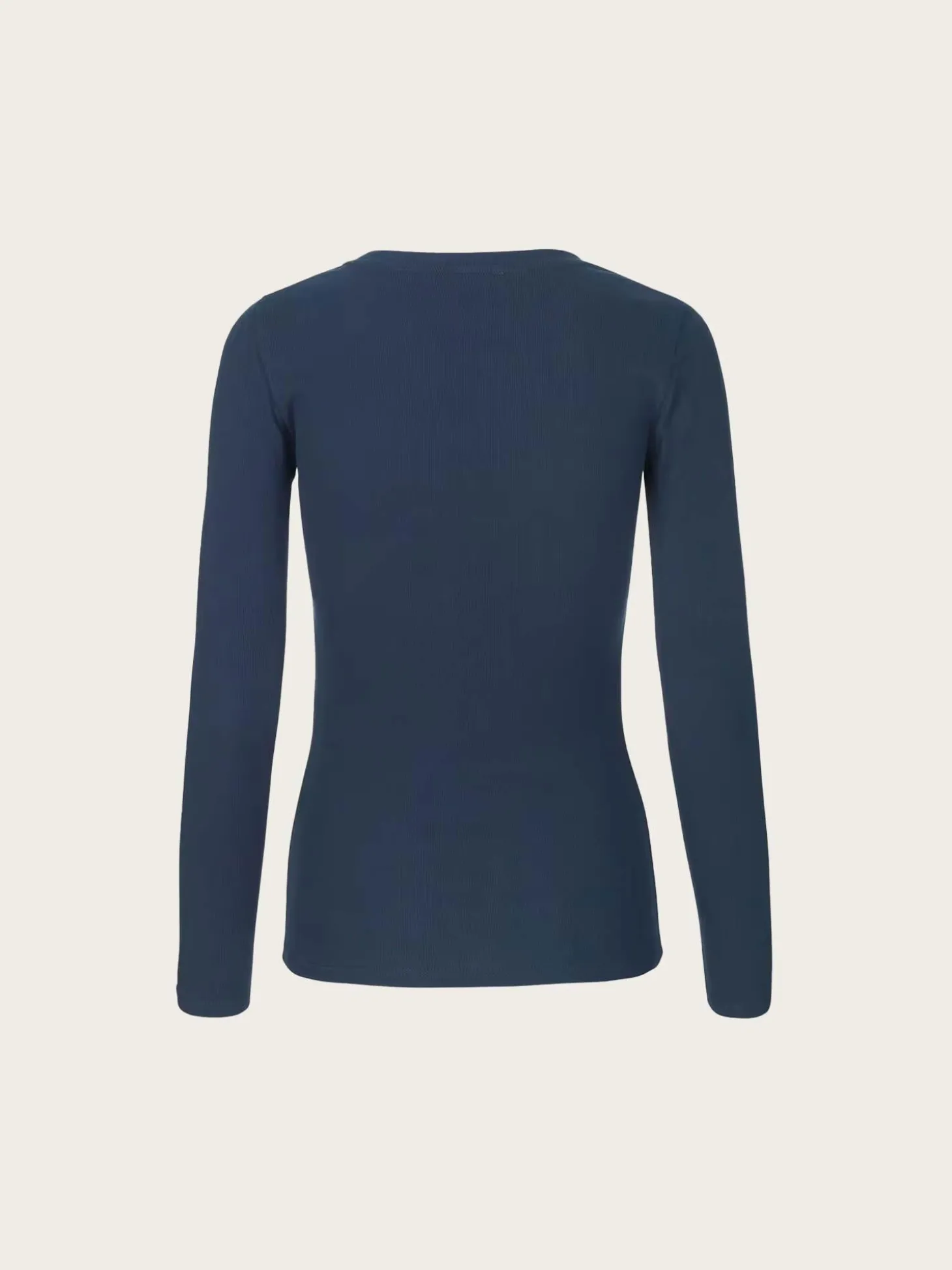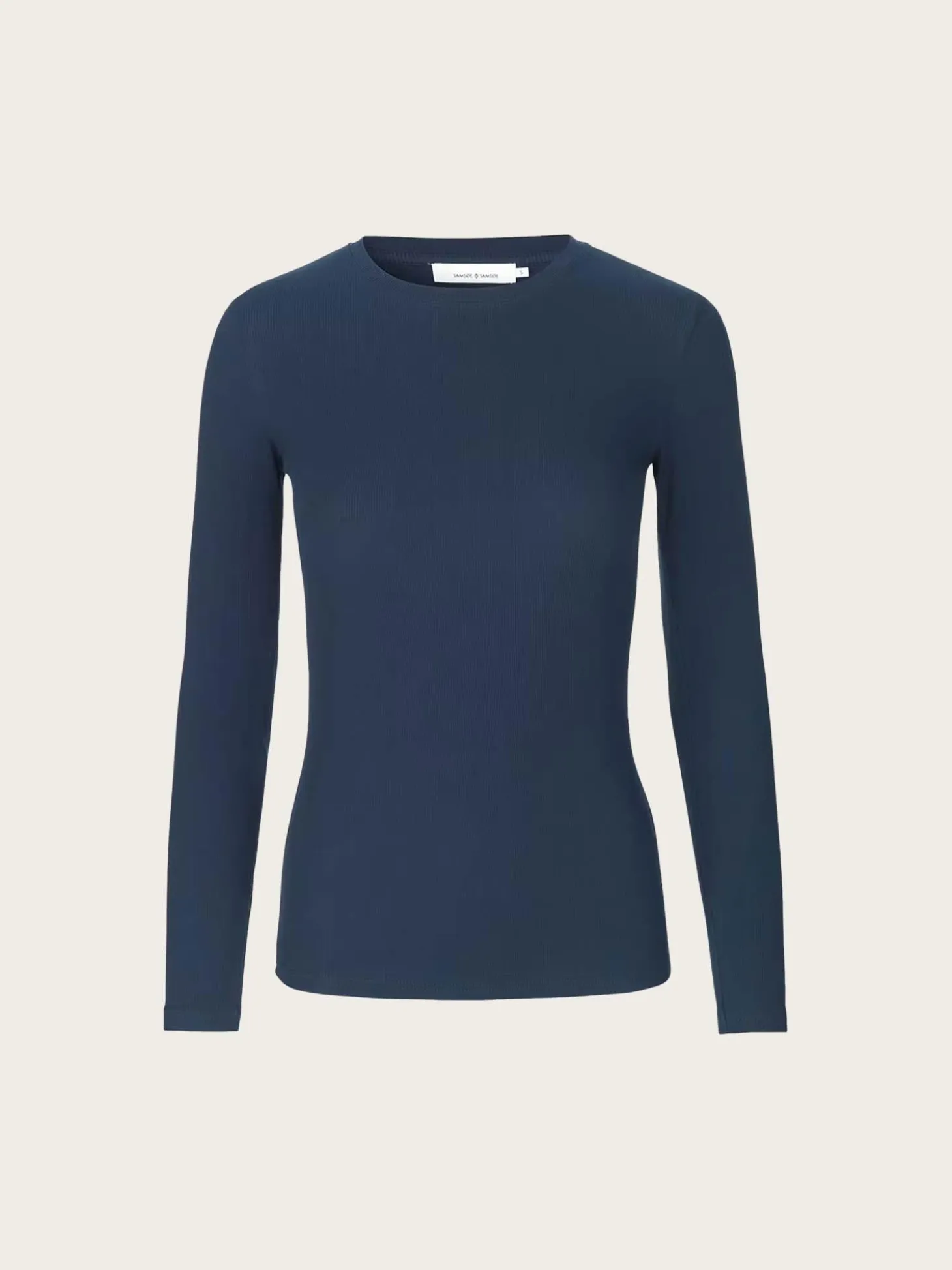 En klassisk og fin ribbestrikket genser, med rund hals, lange ermer og en figurnær passform. Et must i basegarderoben.