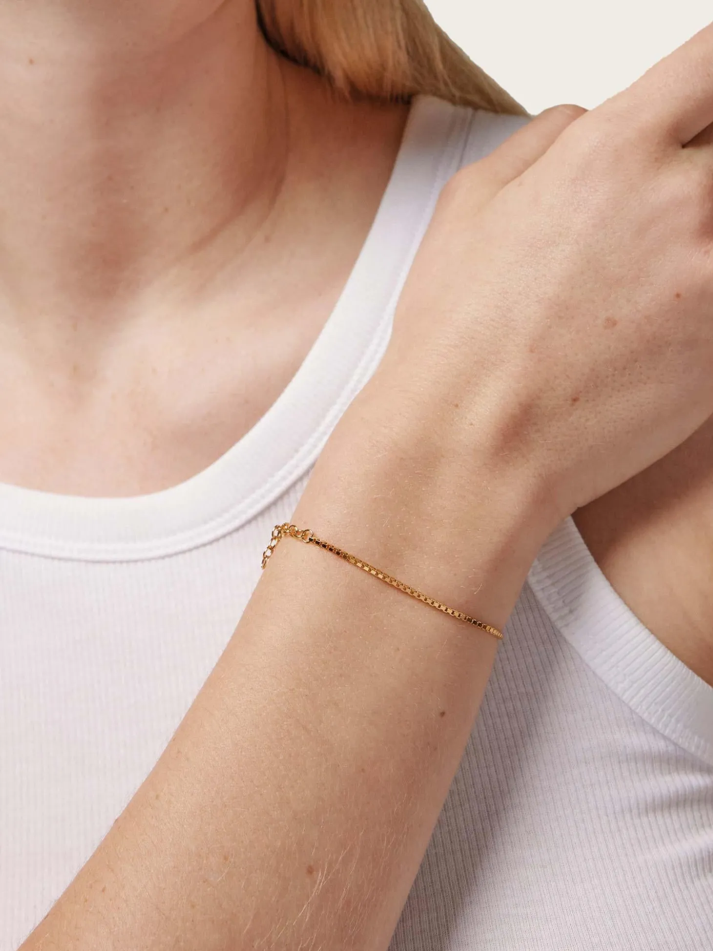 Et gullbelagt armbånd, med blank finish. Armbåndet er karakteristisk, og komplementerer andre armbånd perfekt.