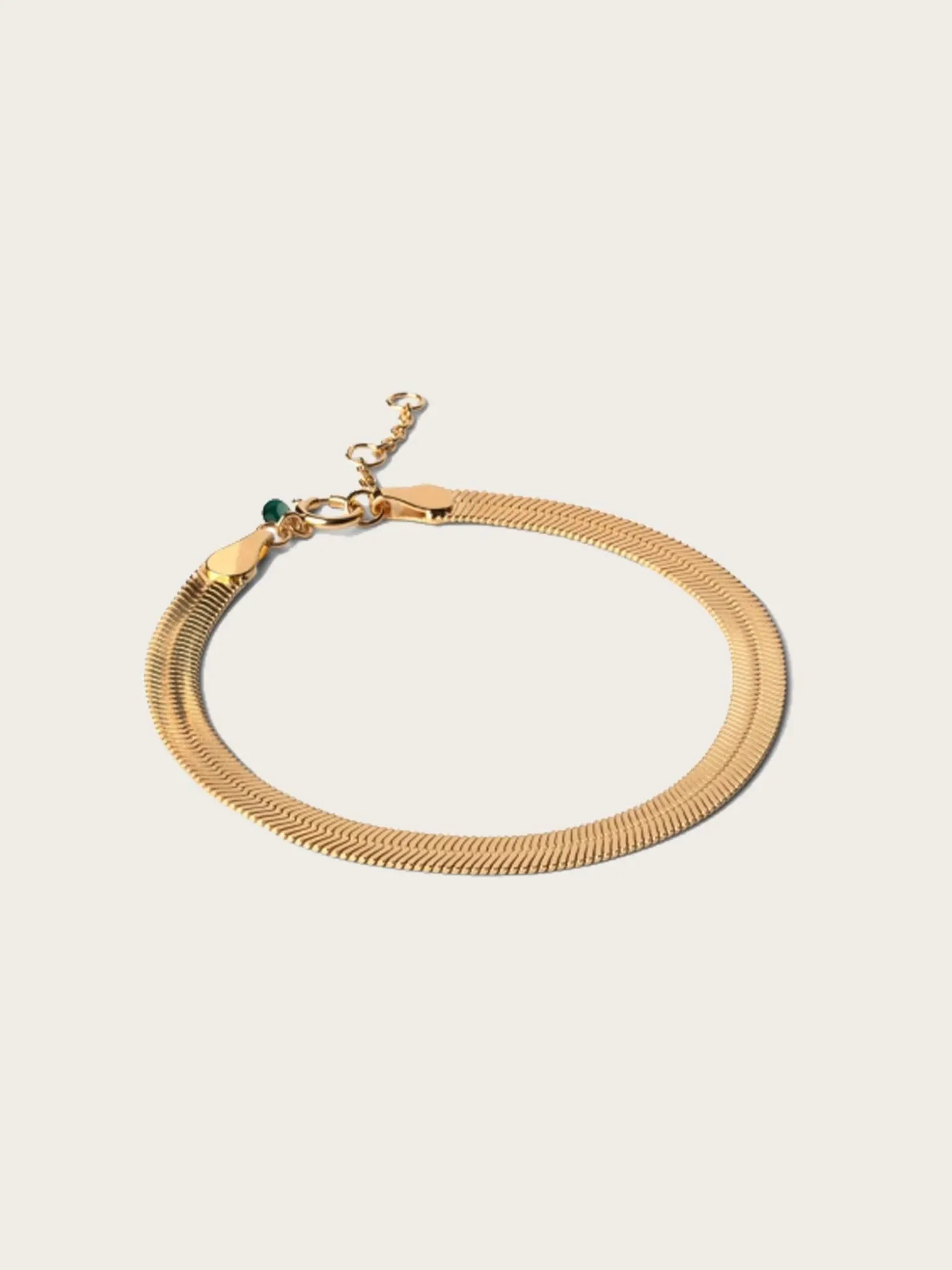 Bracelet Carla fra Enamel. Et klassiskt og fint arnbånd, i forgylt sølv. Fint alene, eller i lag på lag sammen med andre armbånd.