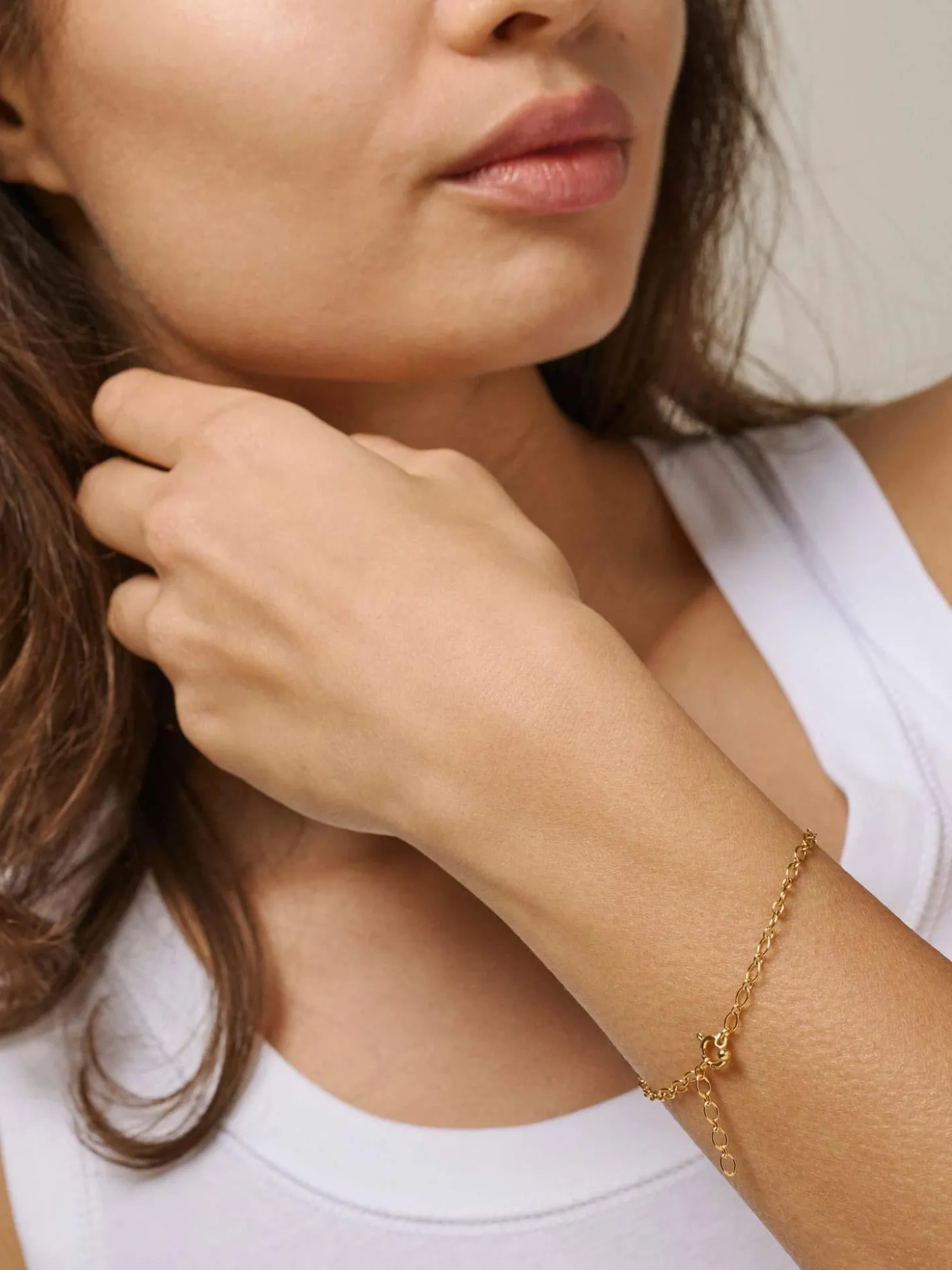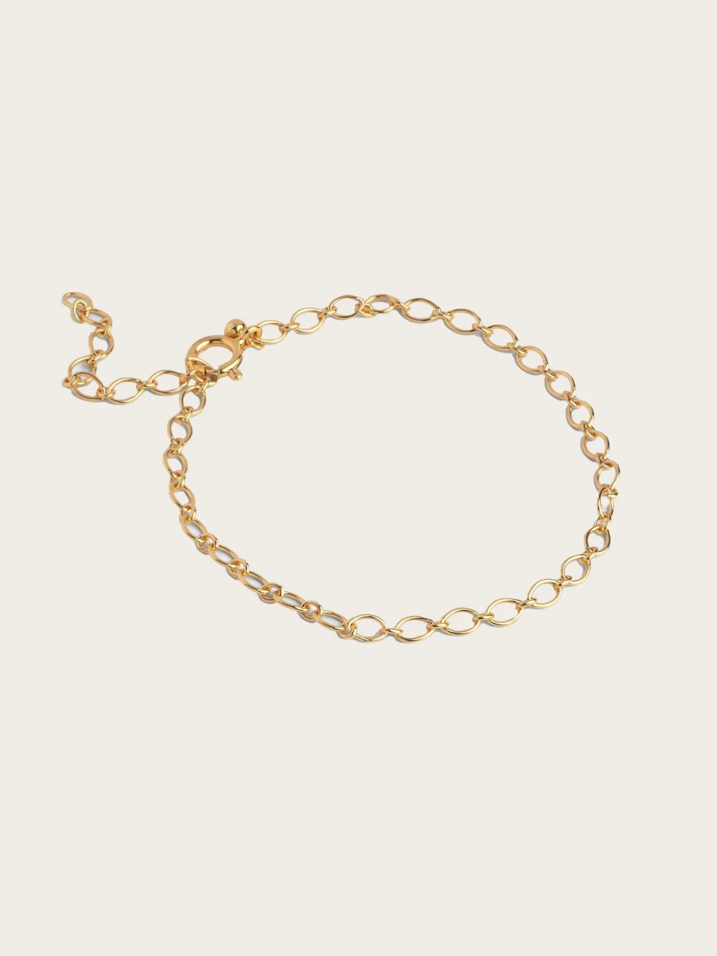 Simple Charm-armbåndet består av ovale lenker der våre charms kan settes inn. Armbåndet er også vakkert i seg selv og med sin enkle design kan det enkelt kombineres med alle dine andre armbånd. Kneppet kan lukkes på hvilken som helst lenke, noe som gjør det til et svært fleksibelt armbånd i størrelse.