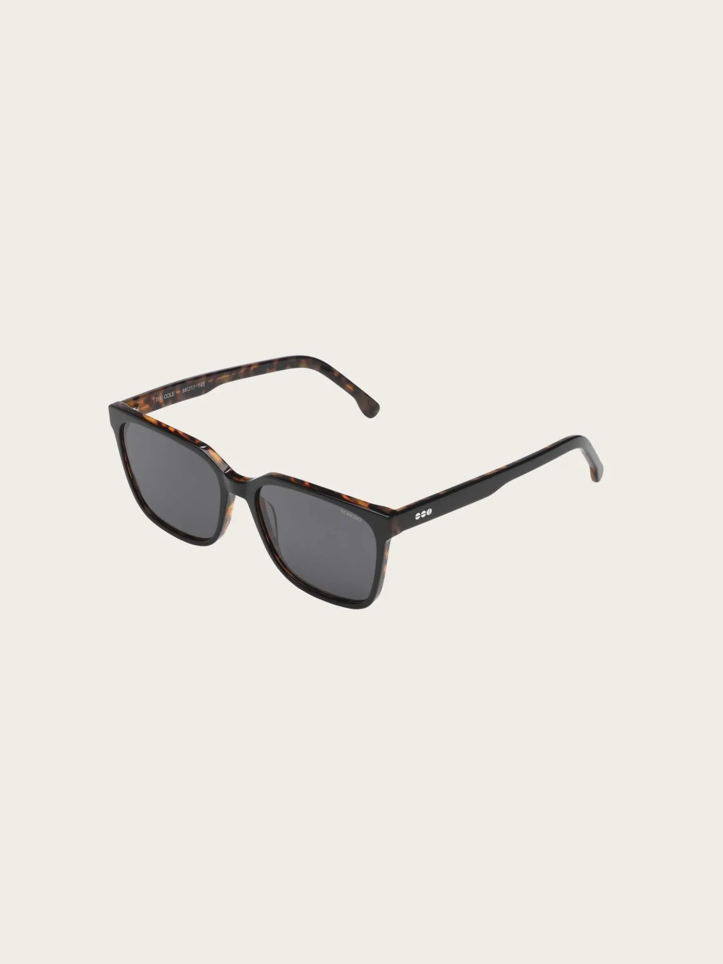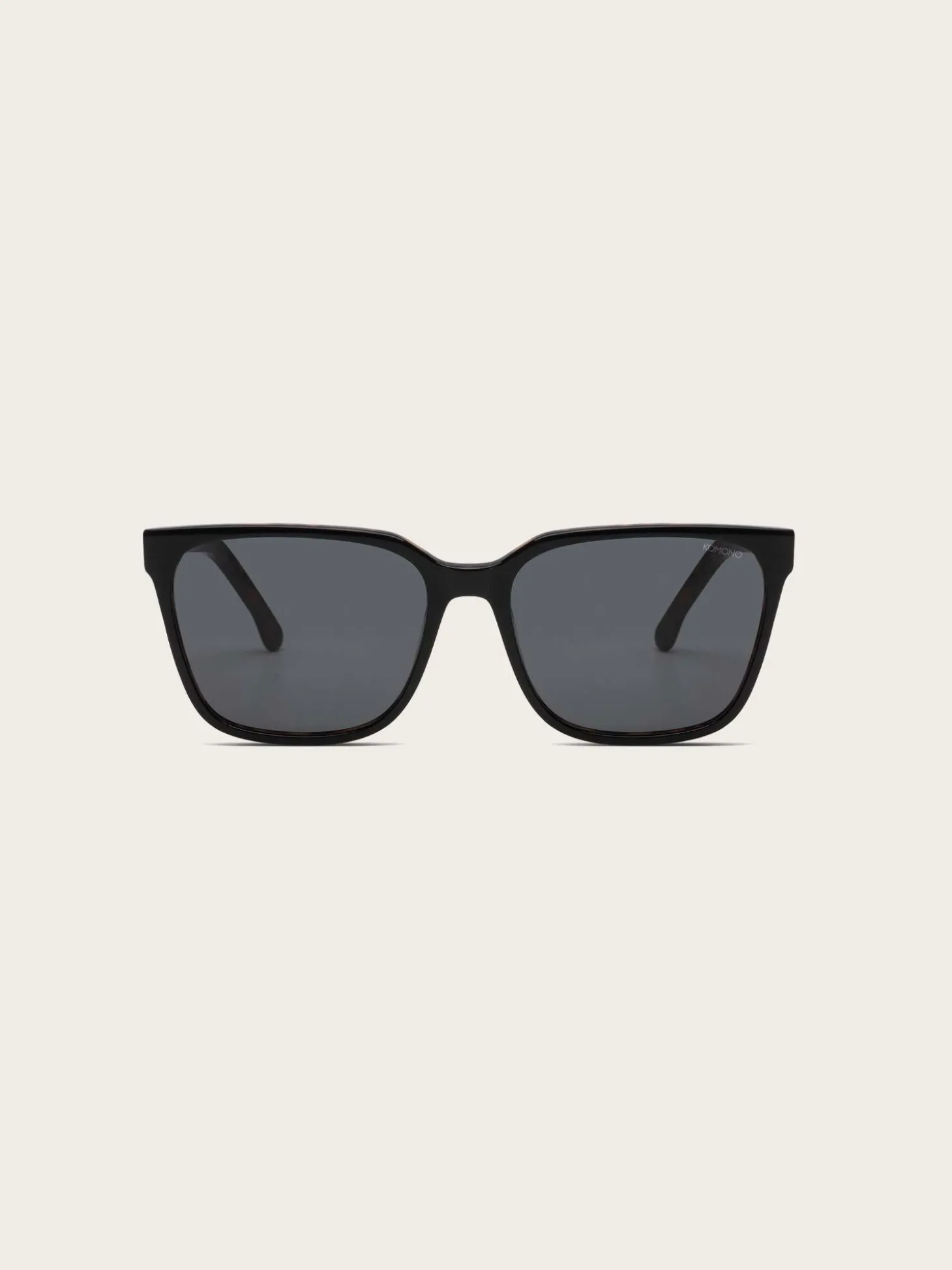 Cole Sunglasses fra Komono. En klassisk og fin solbrille, med en enkel og delikat innfatning. Den har sorte glass og sort ramme med brune detaljer på innsiden.