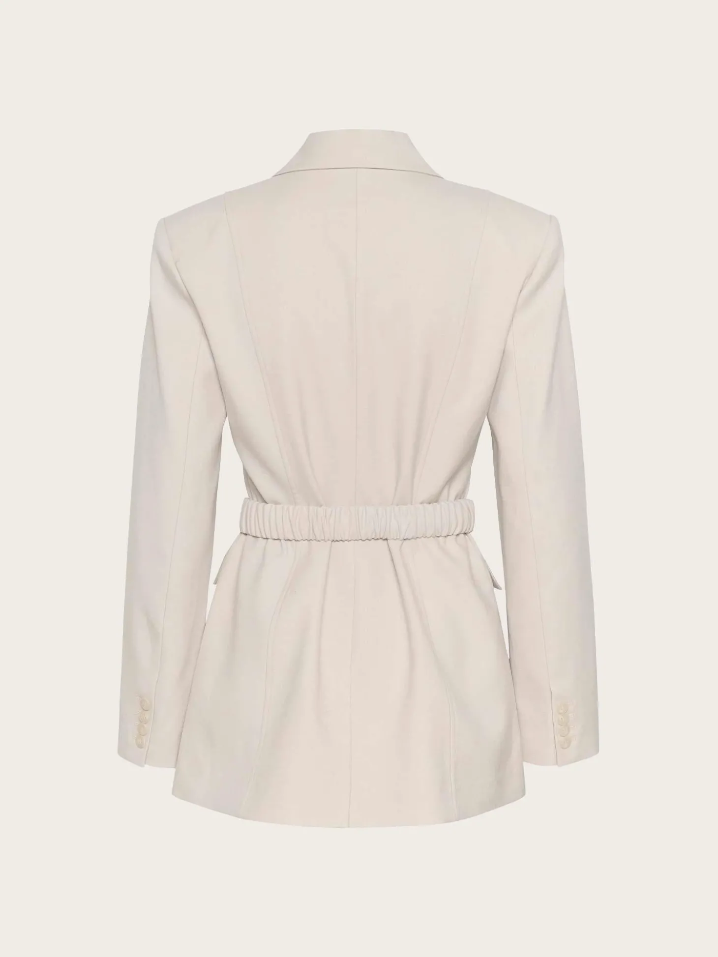 En superkul blazer med markert midje. Den har avtagbart belte, overlapp med enkel knapp i siden og markerte skuldre. Passer perfekt med Dagny hw Pants.
