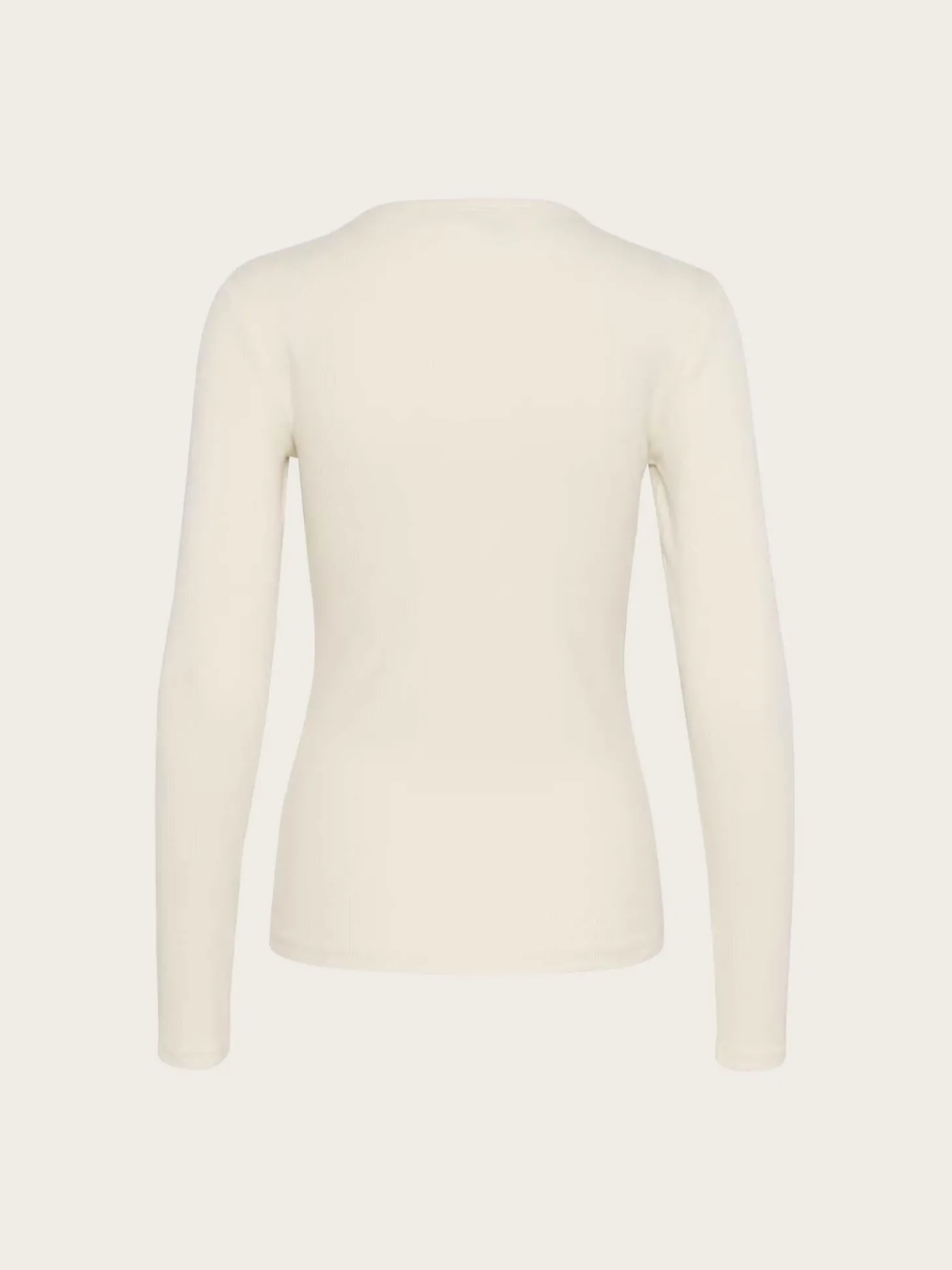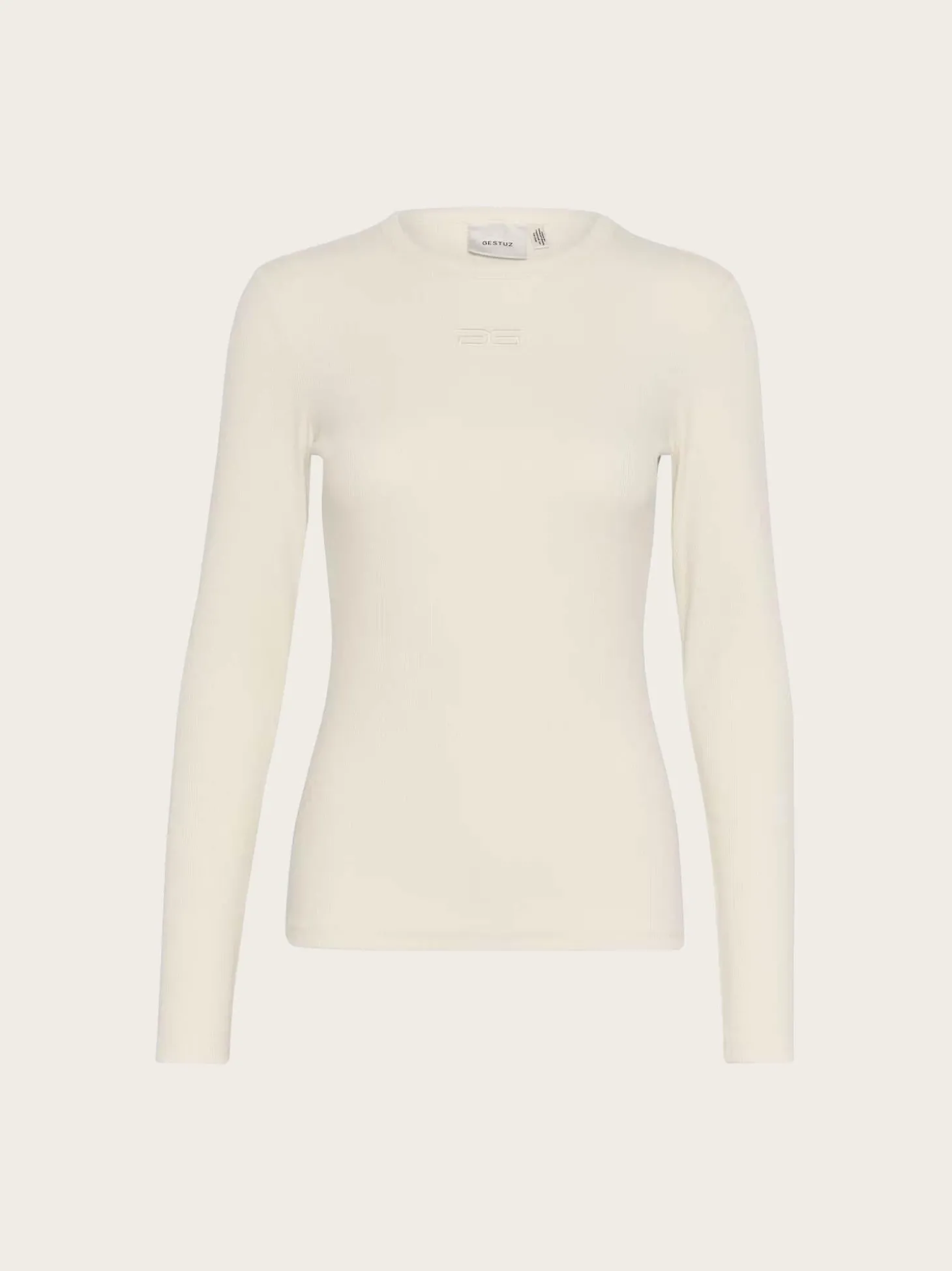 En klassisk og fin ribbestrikket genser, med rund hals og figurnær passform. Den har ton i ton-logo i front. Garderobefavoritt!