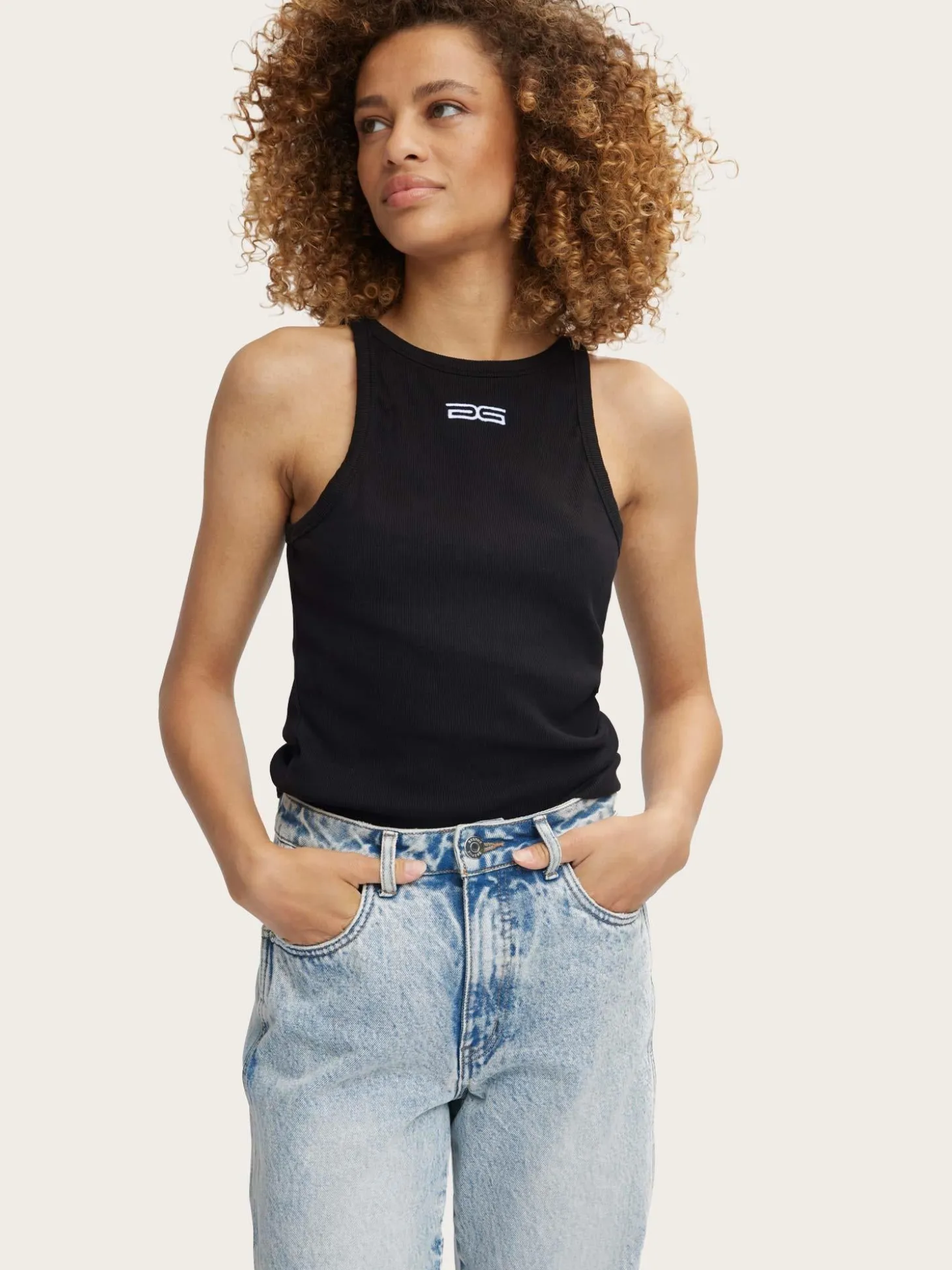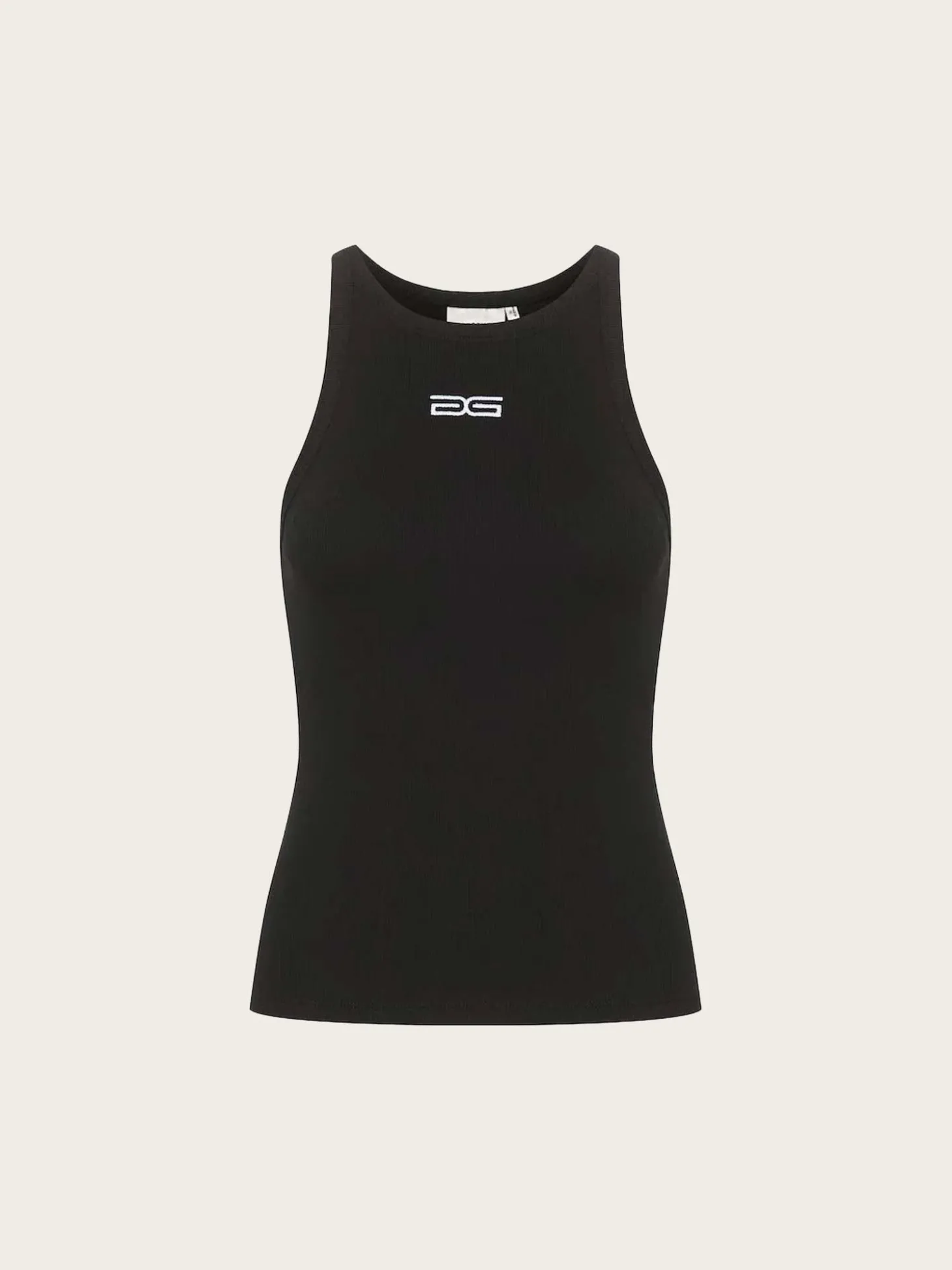 Drew sl Logo Tank fra Gestuz. En klassisk og fin ribbestrikket singlet, med rund hals og figurnær passform. Garderobefavoritt!