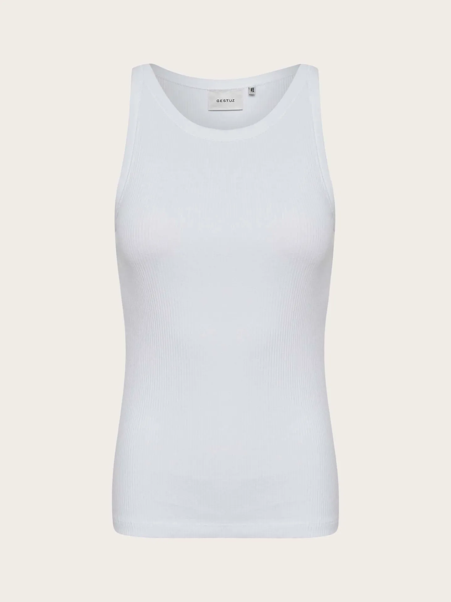 En klassisk og fin ribbestrikket singlet, med rund hals og figurnær passform.