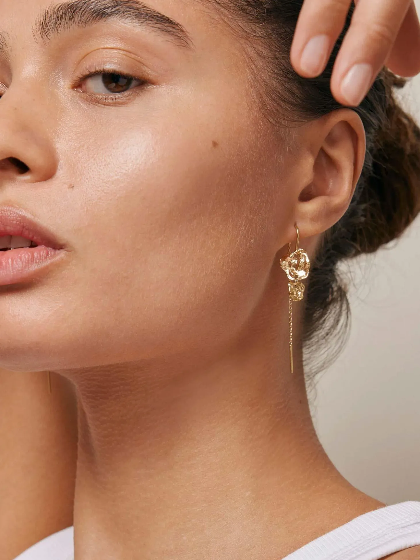 En elegant øredobb, med en lett og eksklusiv design. Den har organisk form på front, og en lang bakdel som henger pent.