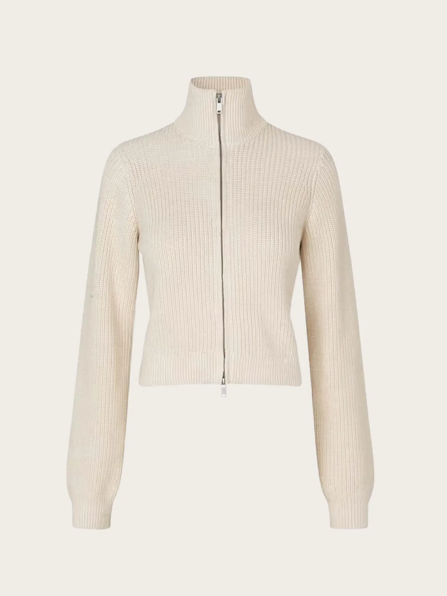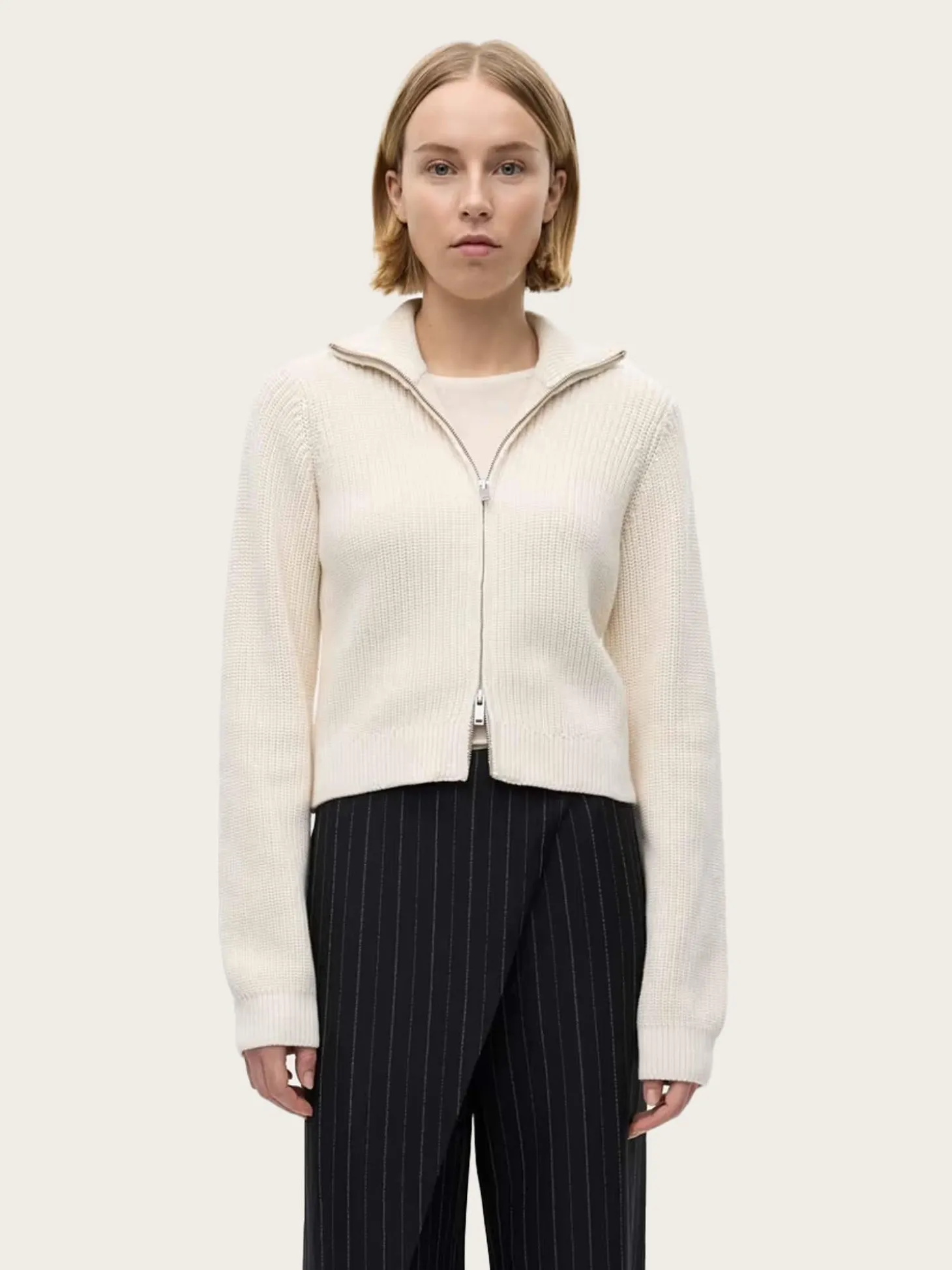 En ribbestrikket cardigan med glidelåslukking og tettsittende passform. Designet i et mykt, tykt og elastisk materiale med chunky ribbestruktur som gir en moderne og komfortabel look.