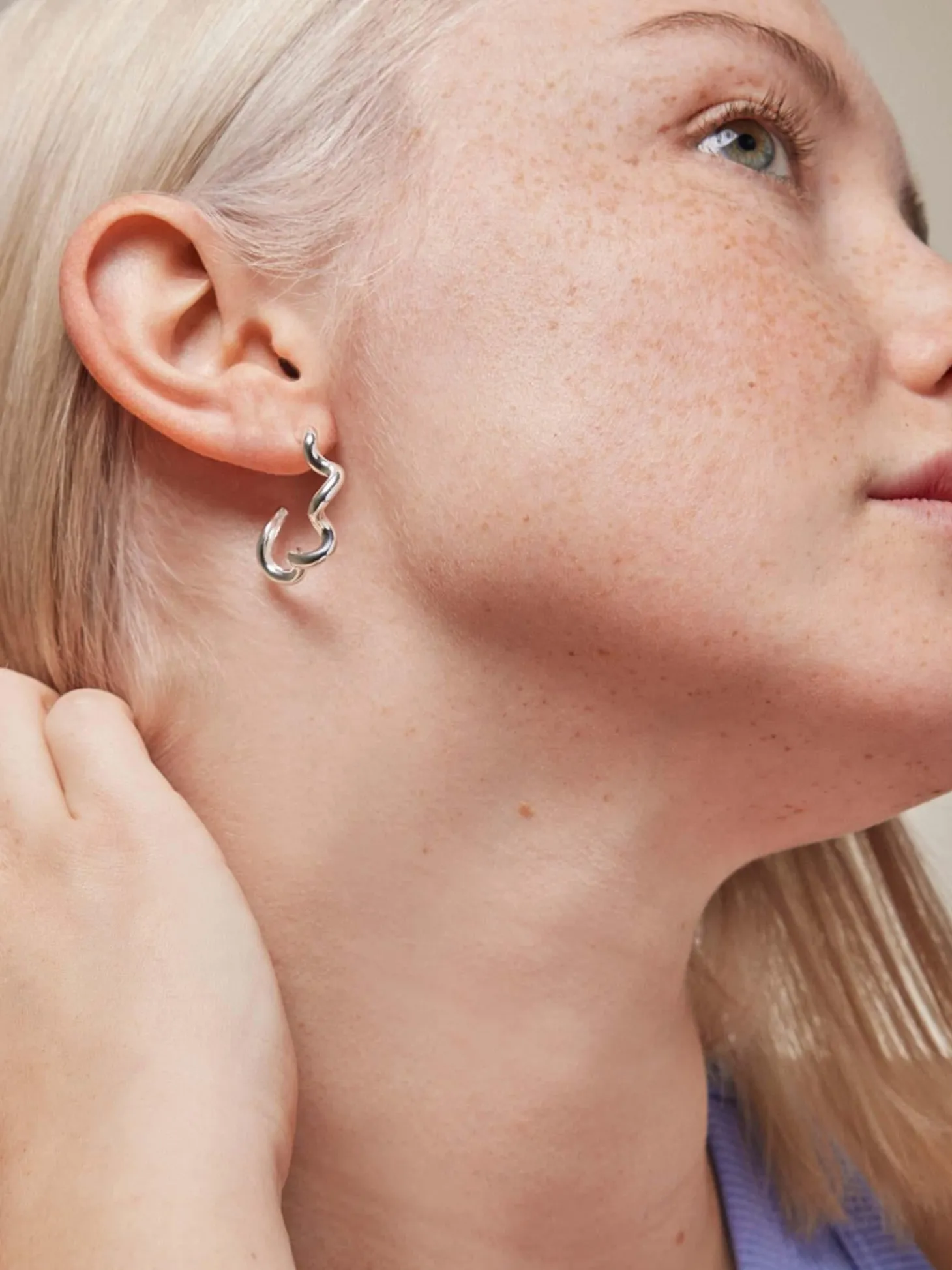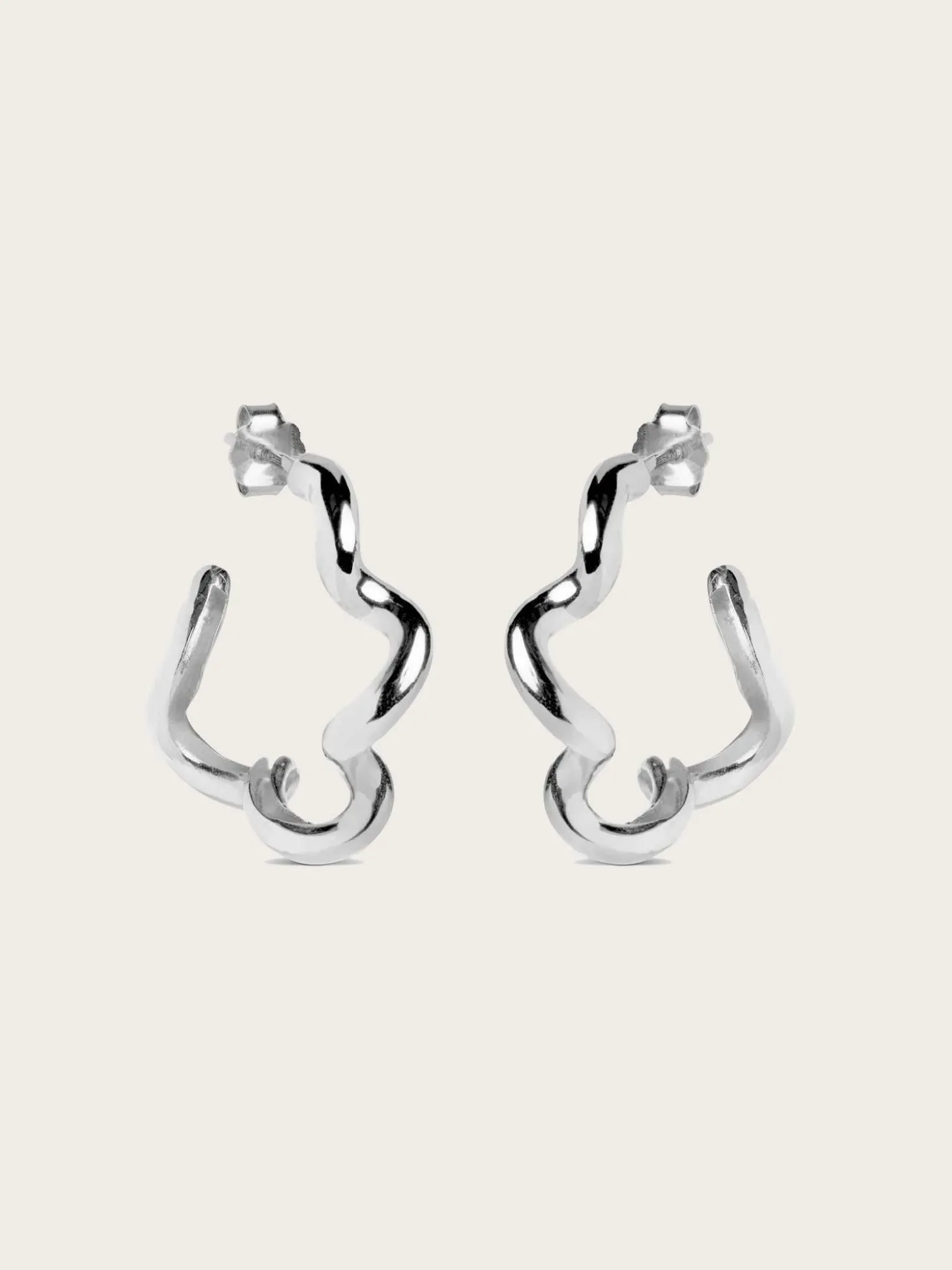 Hoops Curly fra Enamel. Et par festlige, livlige og super iøynefallende øreringer med en svingende form. De er lette og behagelige å ha på seg.
