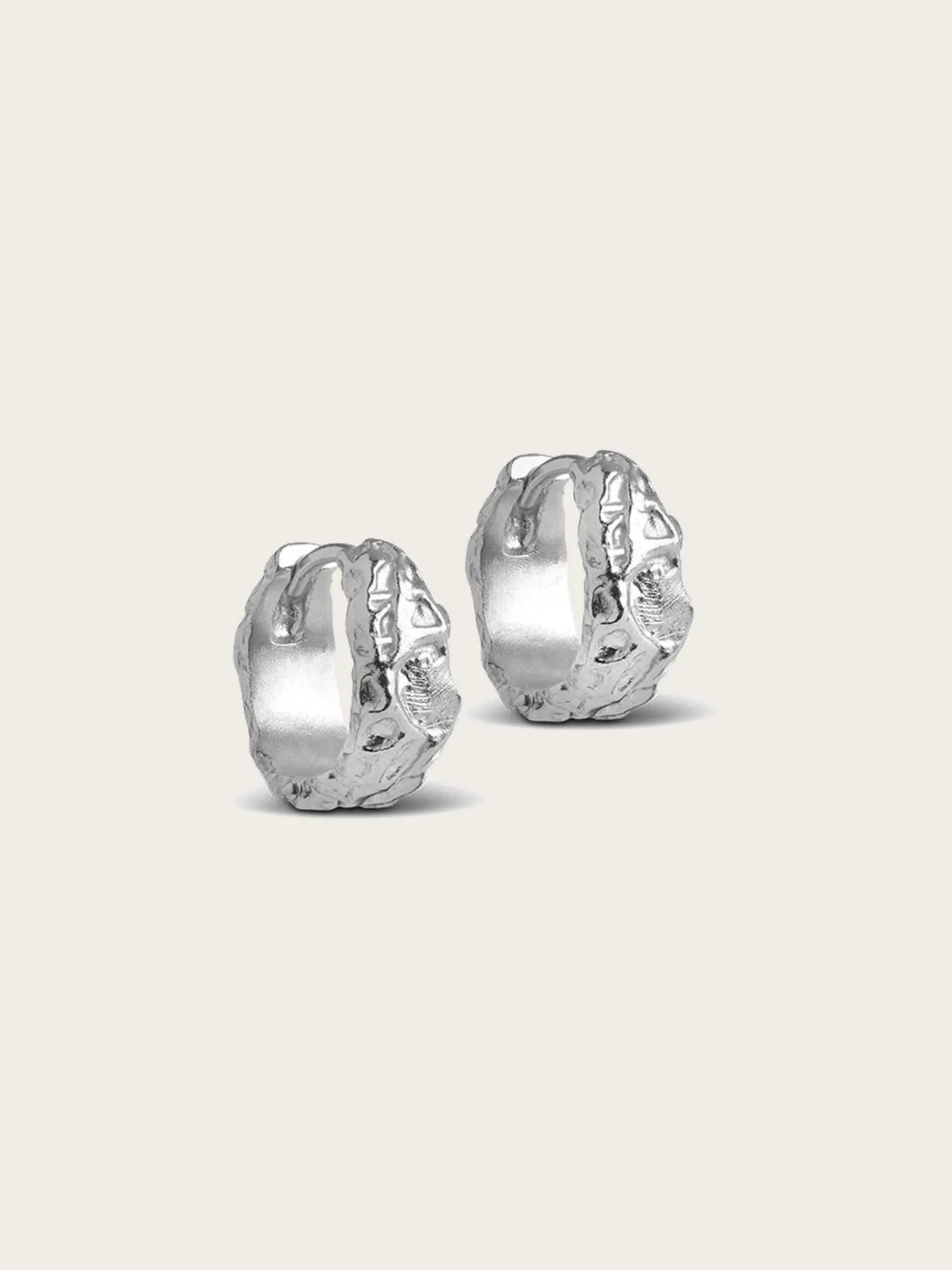 Hoops Nela fra Enamel. En nydelig ørering med en hamret effekt, som gir en rå edge. Den er chunky og har en perfekt liten størrelse