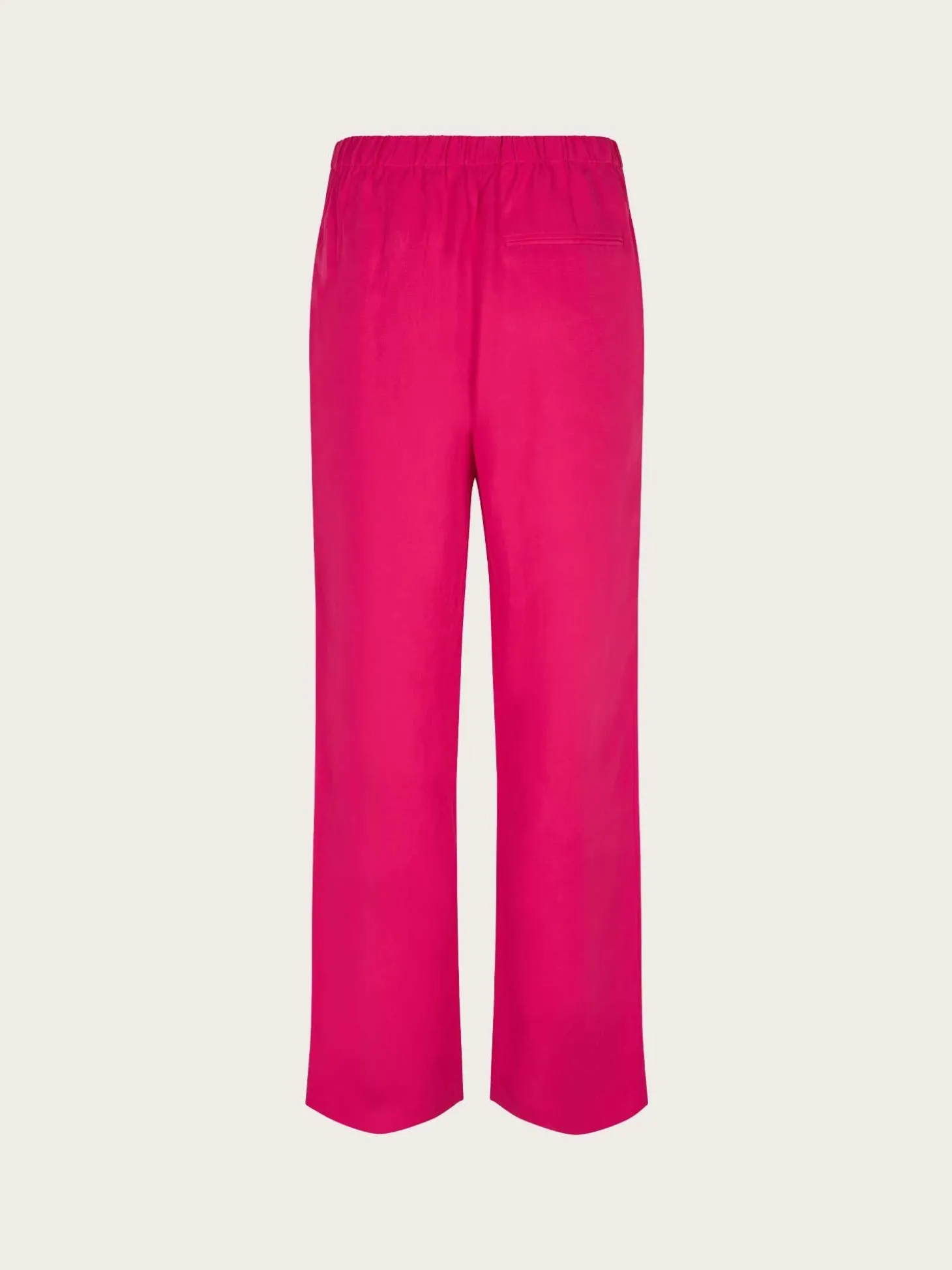 Hoys Straight Pants fra Samsøe Samsøe. En klassisk og enkel bukse i en fresh rosafarge. Den har elastikk i midjen, rette ben og lommer i sidene.