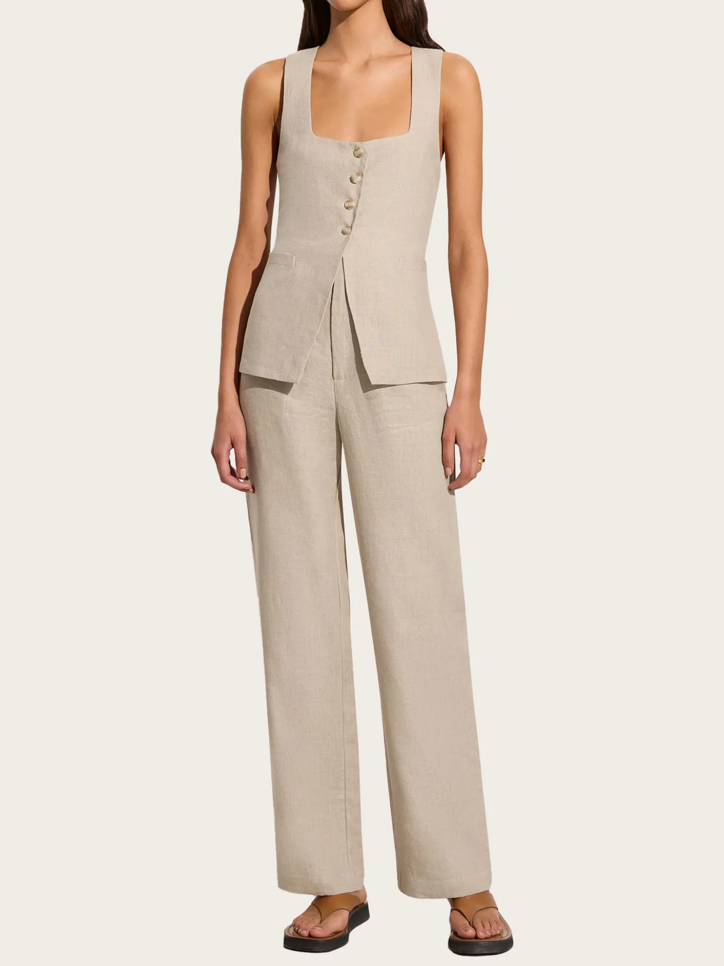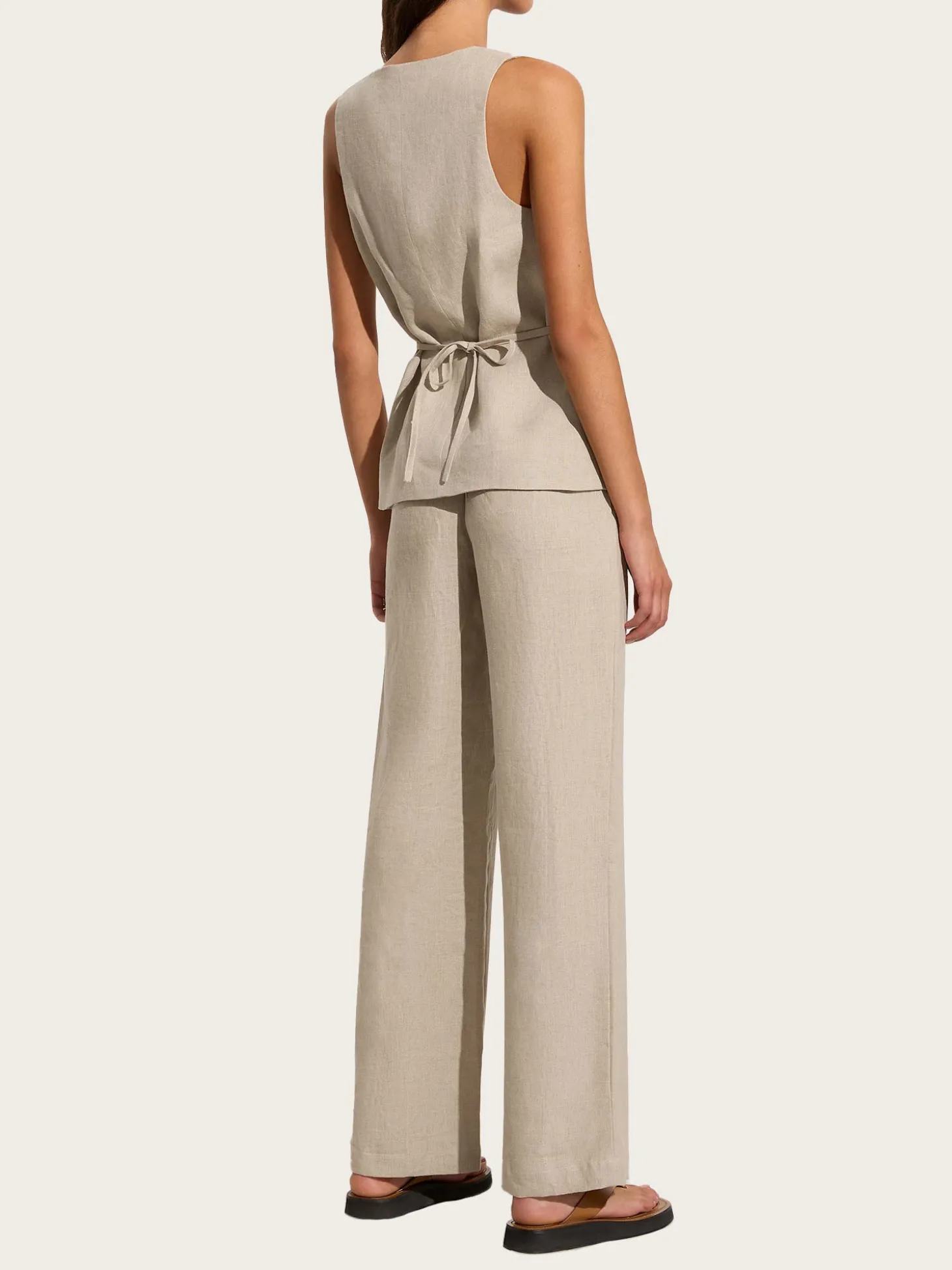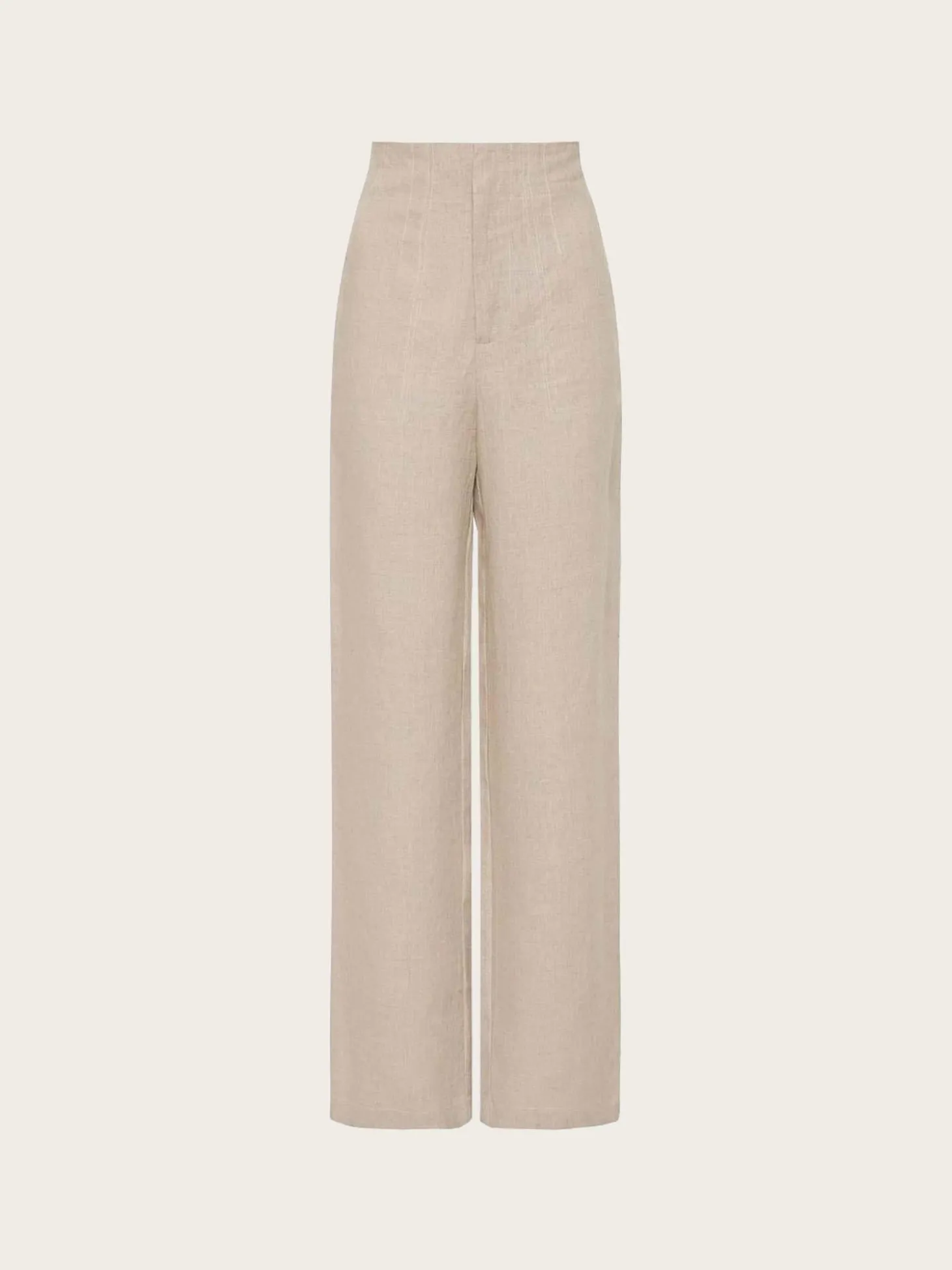 En klassisk og fin linbukse med høyt liv, og vide rette ben.