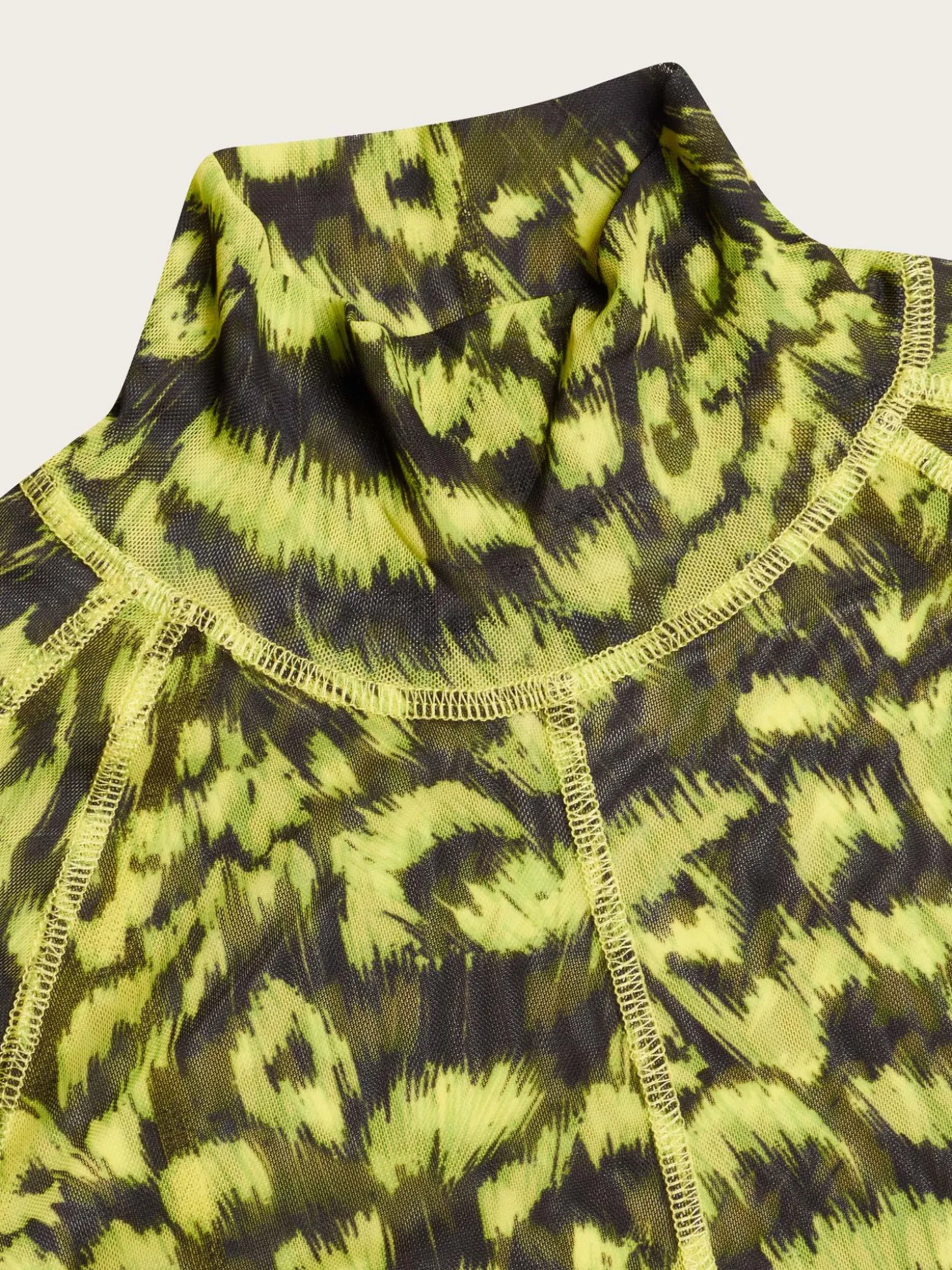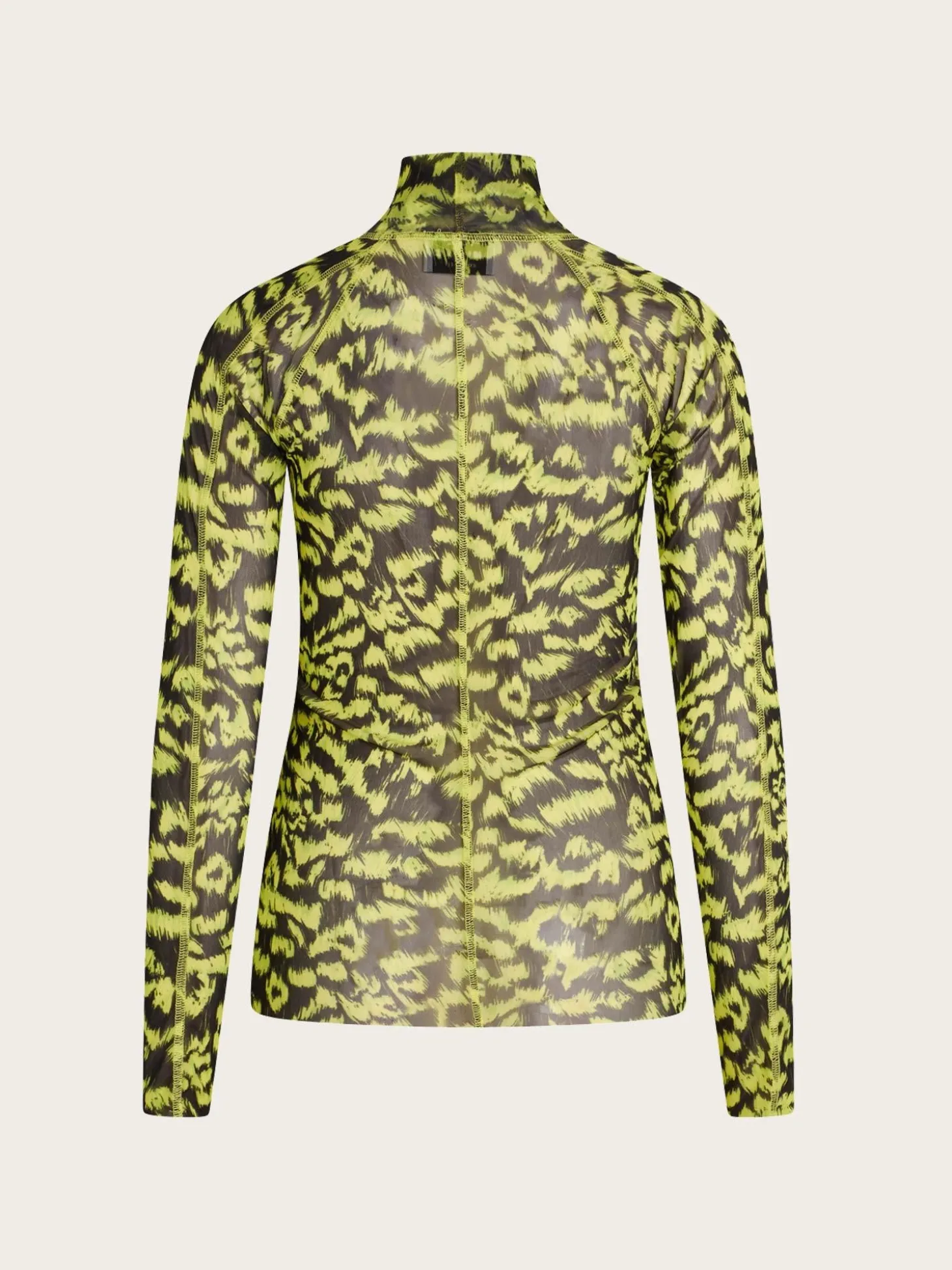 Jersey Mesh Kissingen Top fra Mads Nørgaard. En kul transparent top med fargerikt print. Den har høy hals, lange ermer og en smal passform. Perfekt under gensere, blazere eller alene.