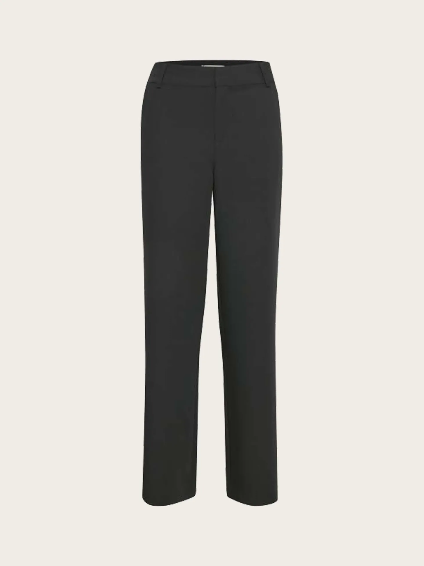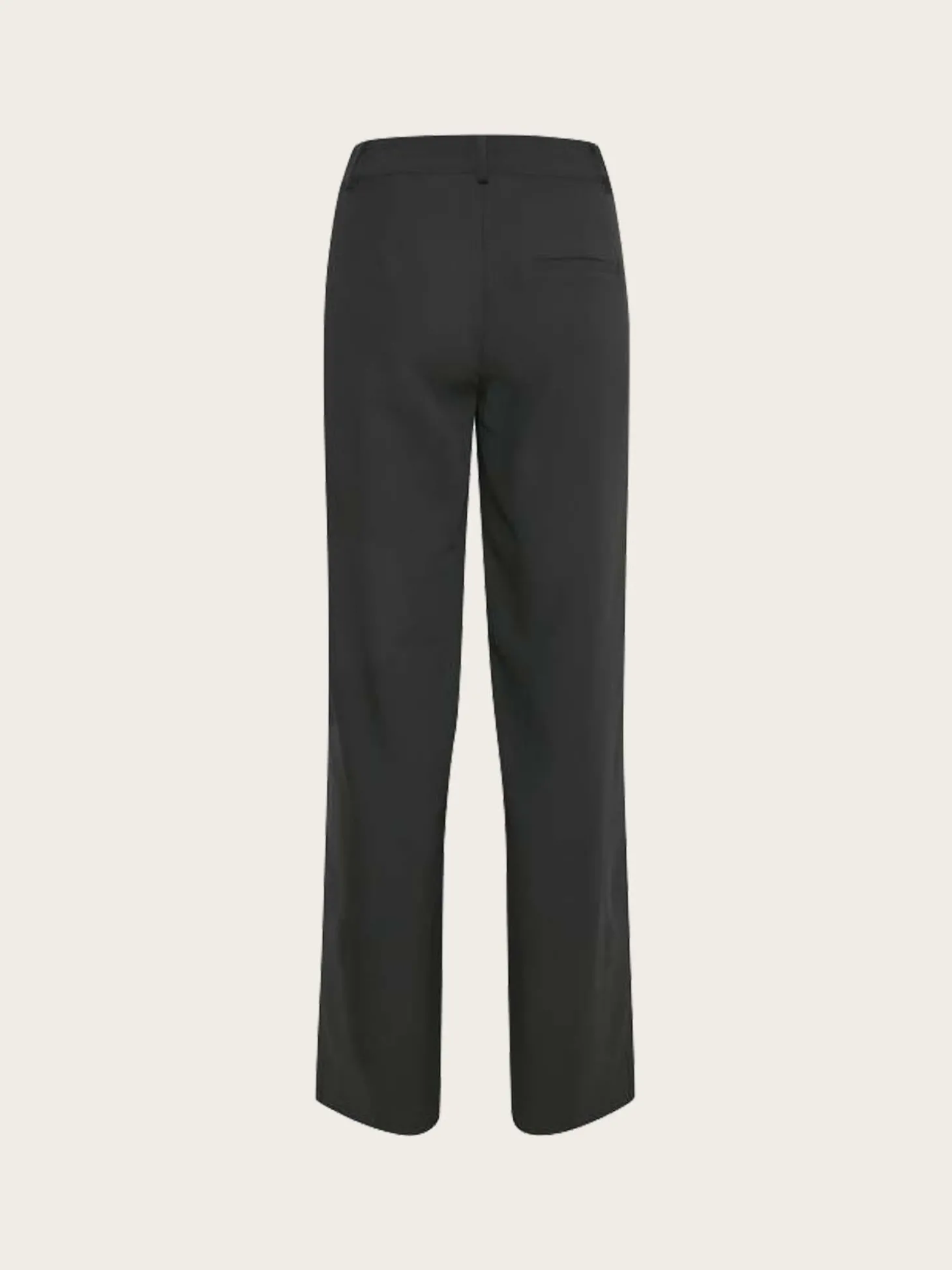 En klassisk og fin dressbukse. Den har medium høyde på livet, lommer i sidene og rette vide ben.
