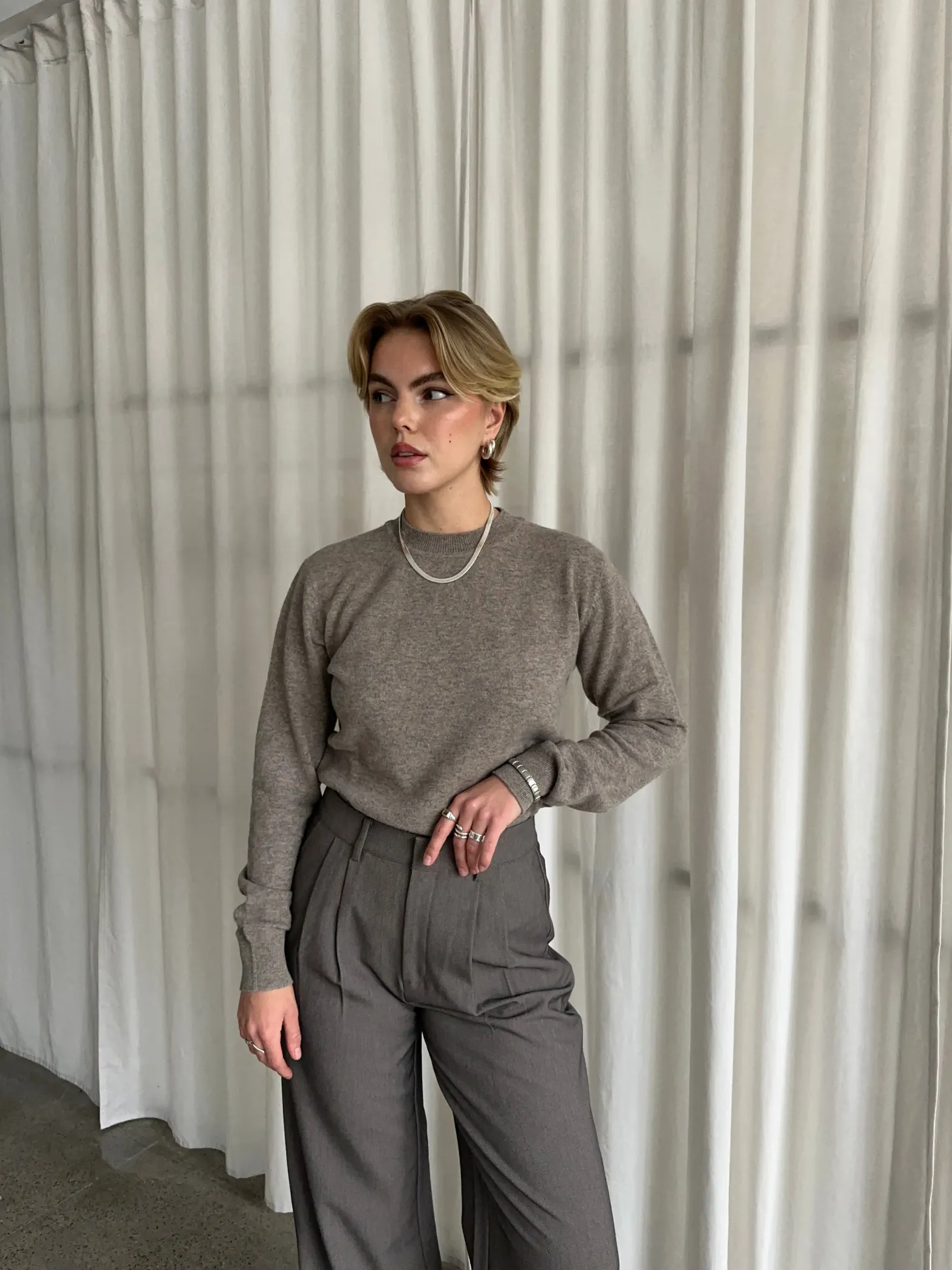 Denne herlige, brune strikkegenseren i en blanding av ull og kashmir er et must i basisgarderoben. Genseren er svært myk og har en rett passform.