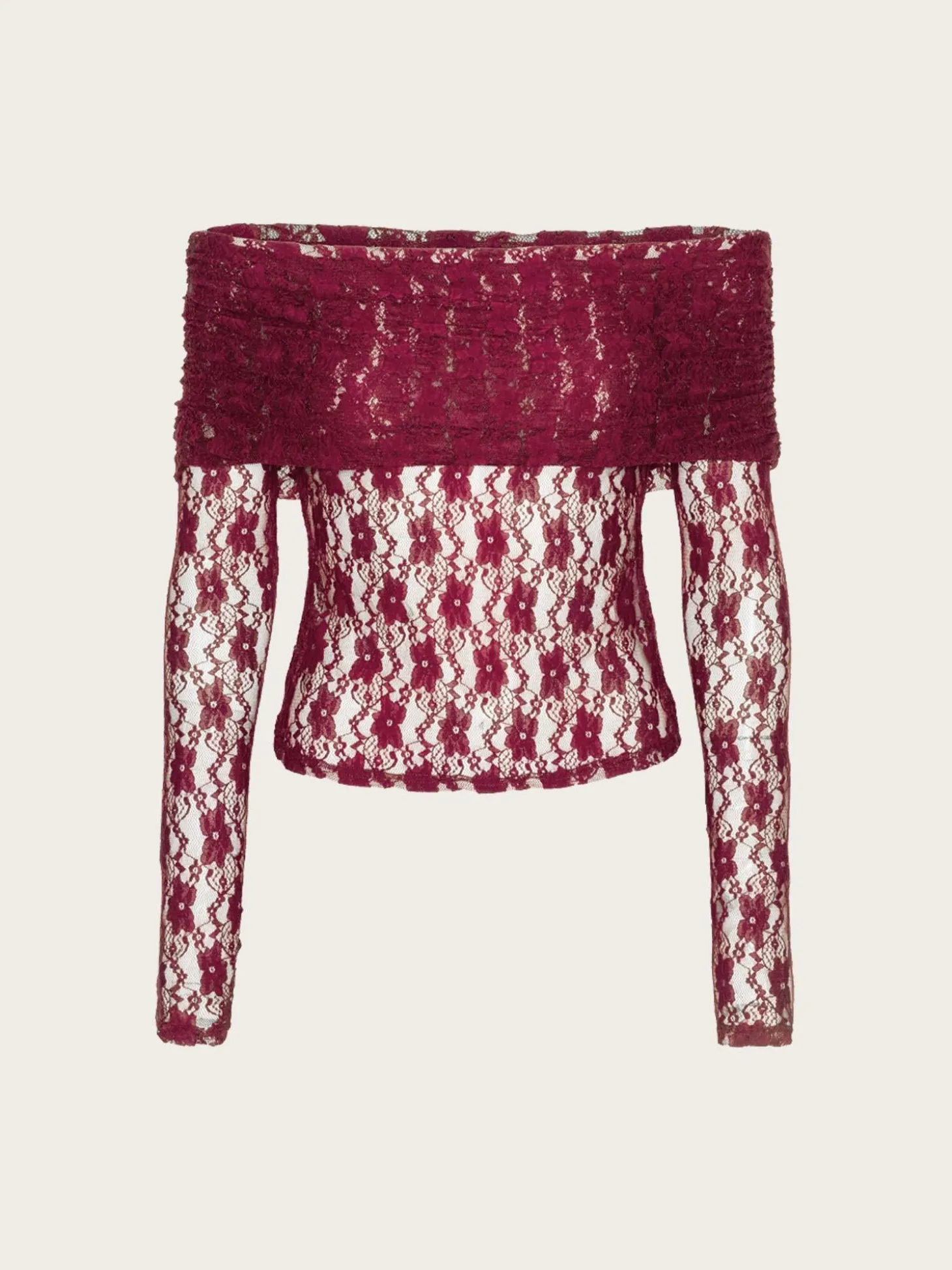 En nydelig off-shoulder blondetopp med lange ermer og smal passform.