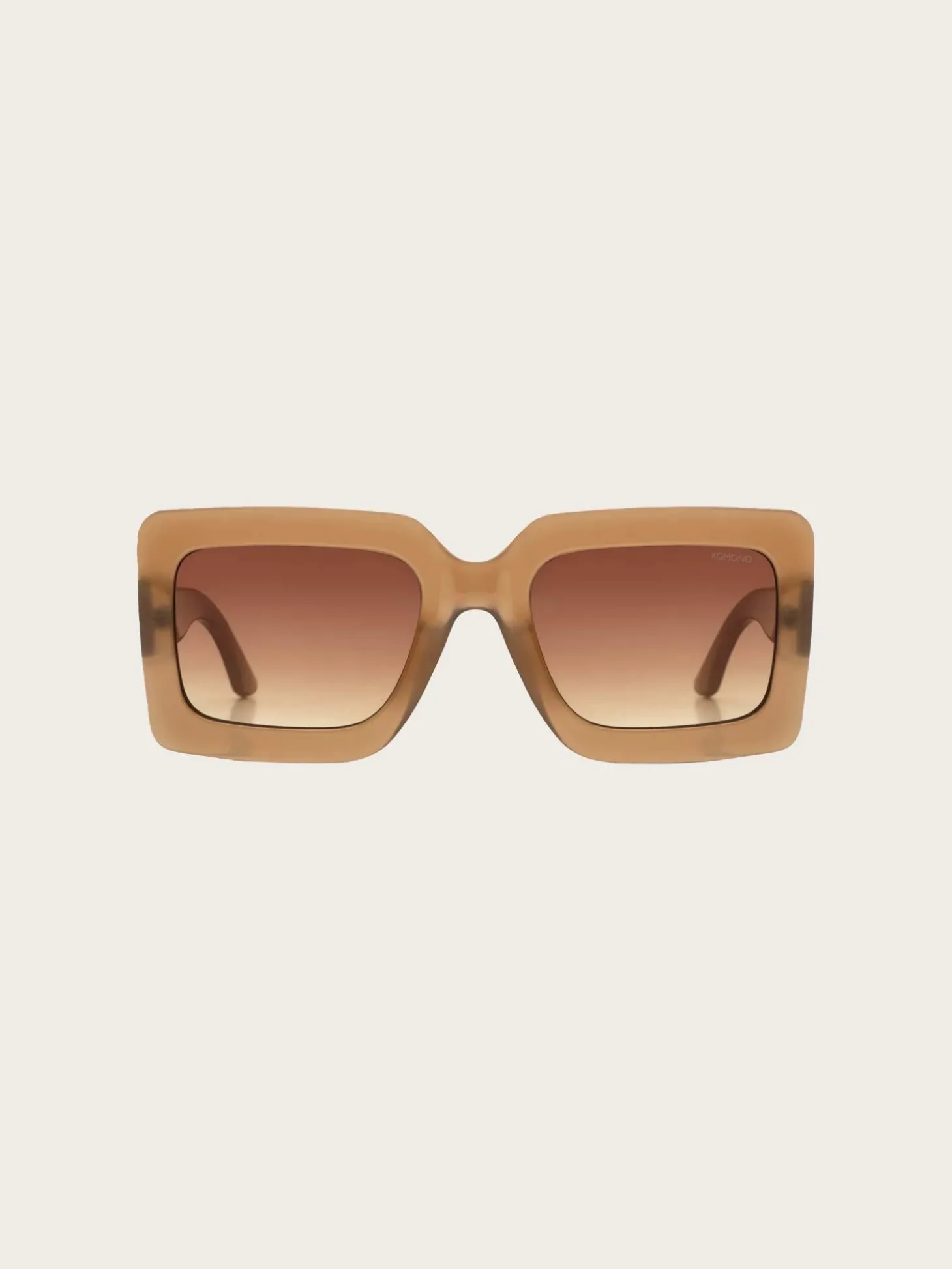 En sofistikert, oversized solbrille med firkantet ramme. Brillene har 100% UV400 beskyttelse og ripebestandig glass. Pusseklut og etui medfølger.