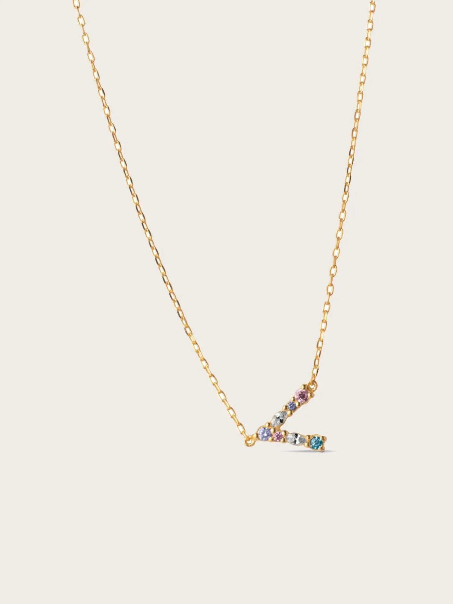 My Name fra Enamel. Et nydelig og fint halskjede med bokstav på, med fargede zircona-stener.