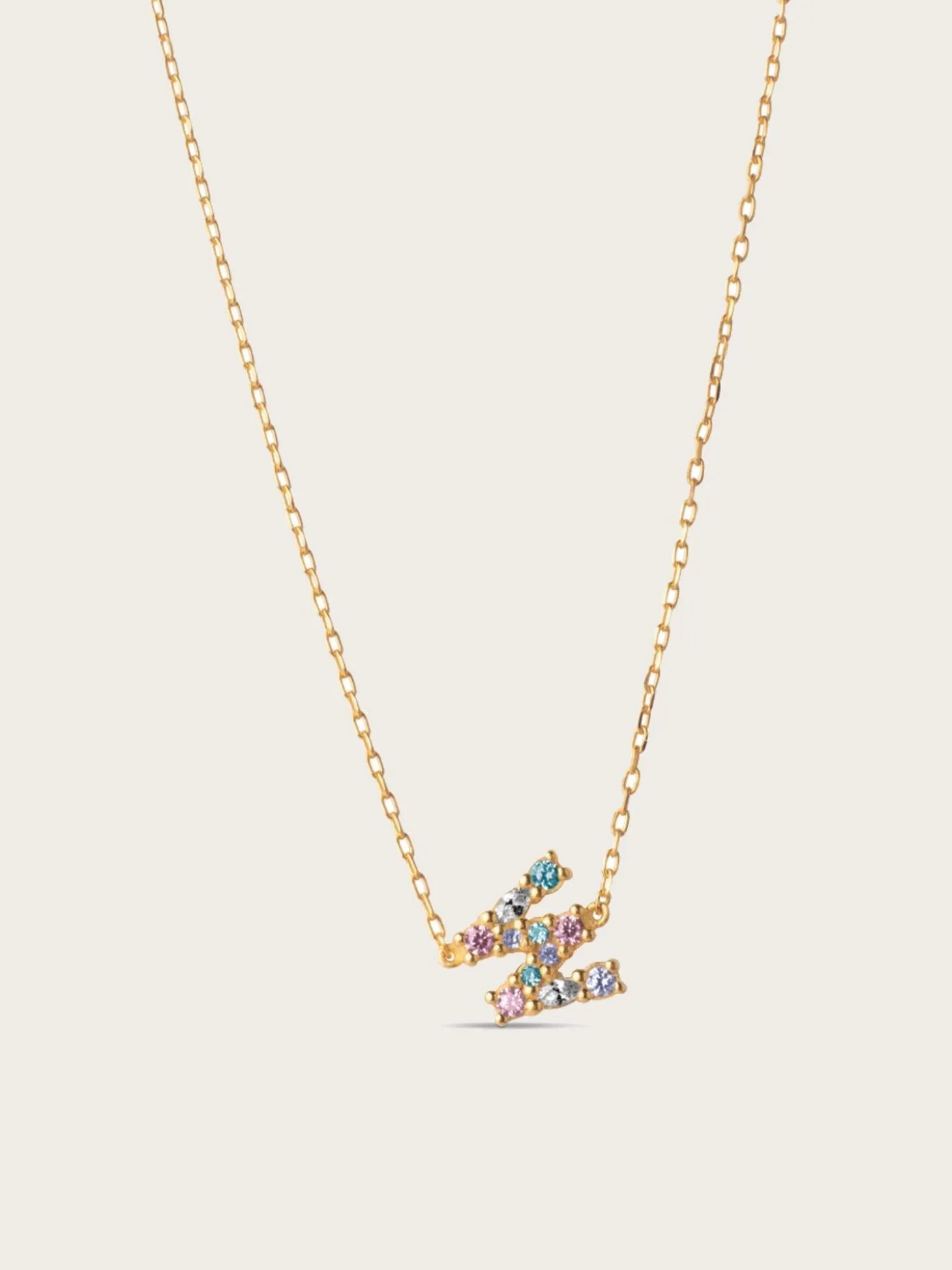 My Name fra Enamel. Et nydelig og fint halskjede med bokstav på, med fargede zircona-stener.