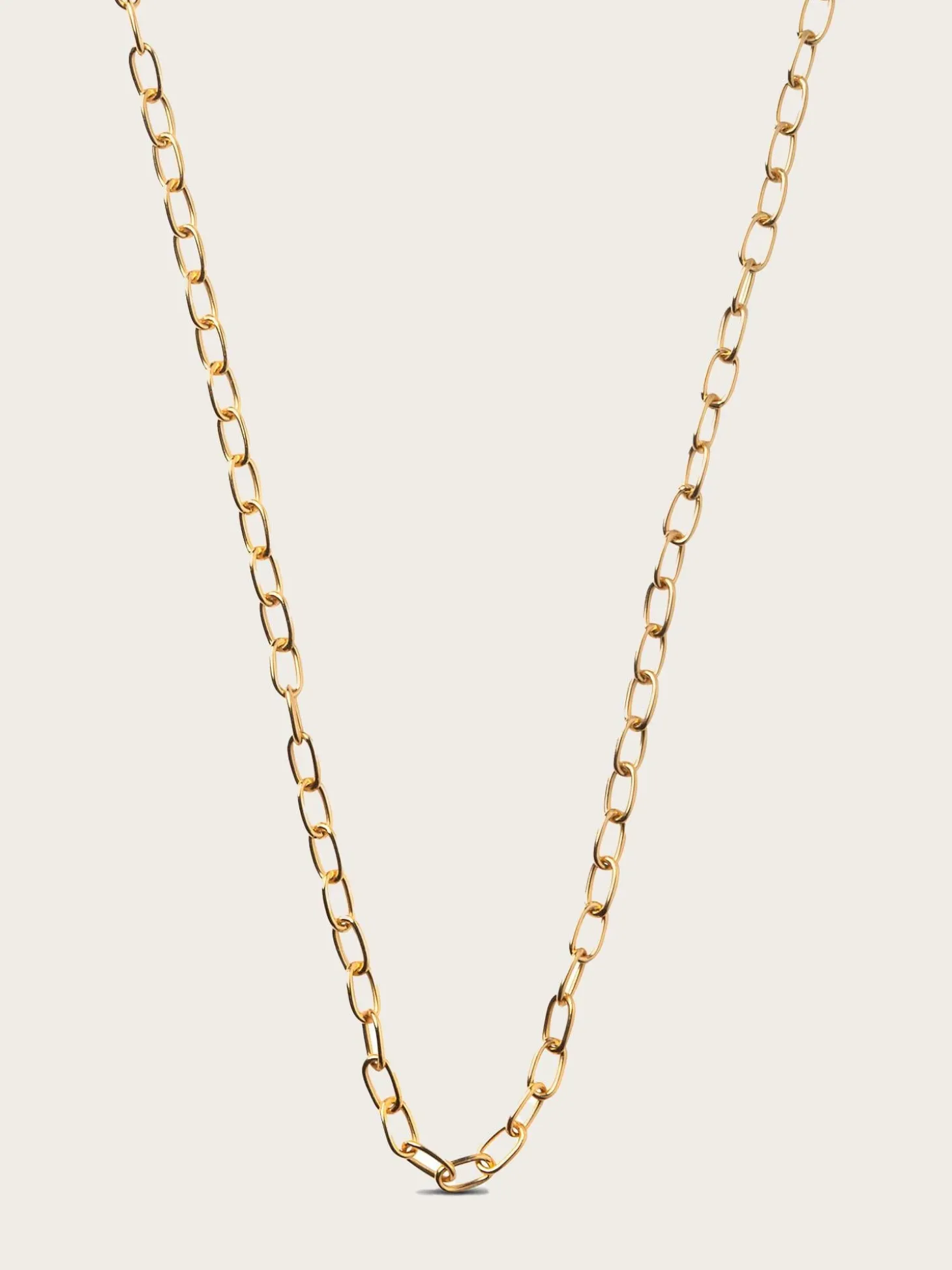 Halskjede er litt chunky, men er likevel super eksklusivt og feminint. Låsen kan lukkes på hvilken som helst lenke, noe som gjør det til et svært fleksibelt halskjede i størrelse.
