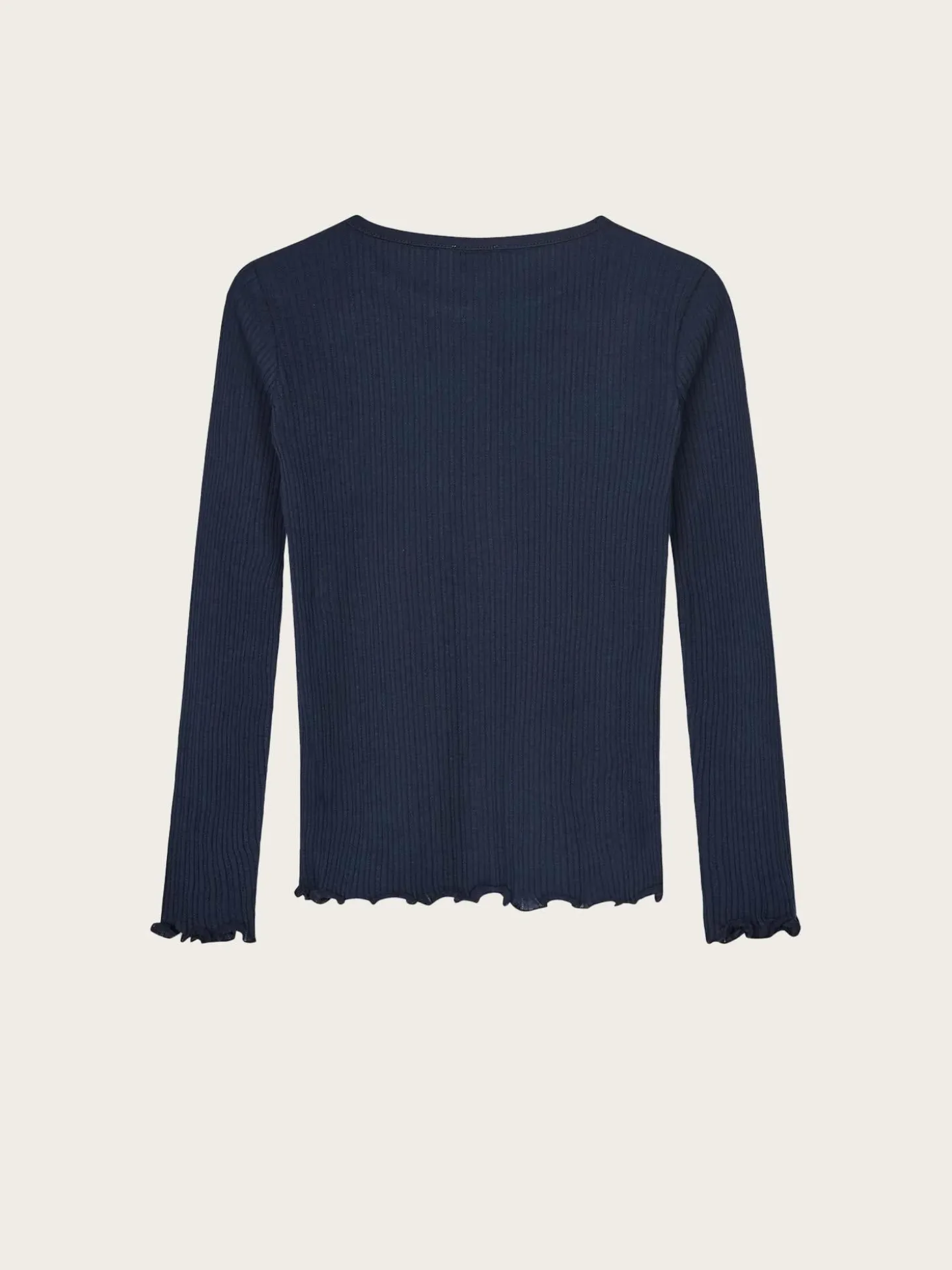 Superfin og myk genser med lange ermer og en tettsittende passform i stretchy ribbestrikket jersey. Den har bølgekant, rund hals og et klassisk mønster som gir et tidløst og feminint uttrykk. Perfekt både alene eller som et lag-på-lag-plagg.