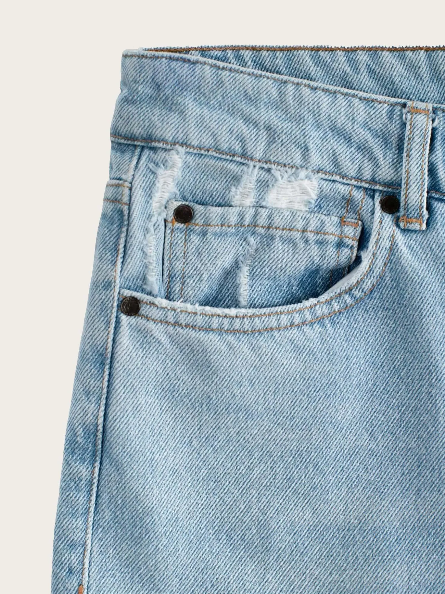 En allsidig og elegant, lyseblå jeans, laget av slitesterkt bomull. Jeansen er designet med høy midje som fremhever silhuetten, og med rette ben.