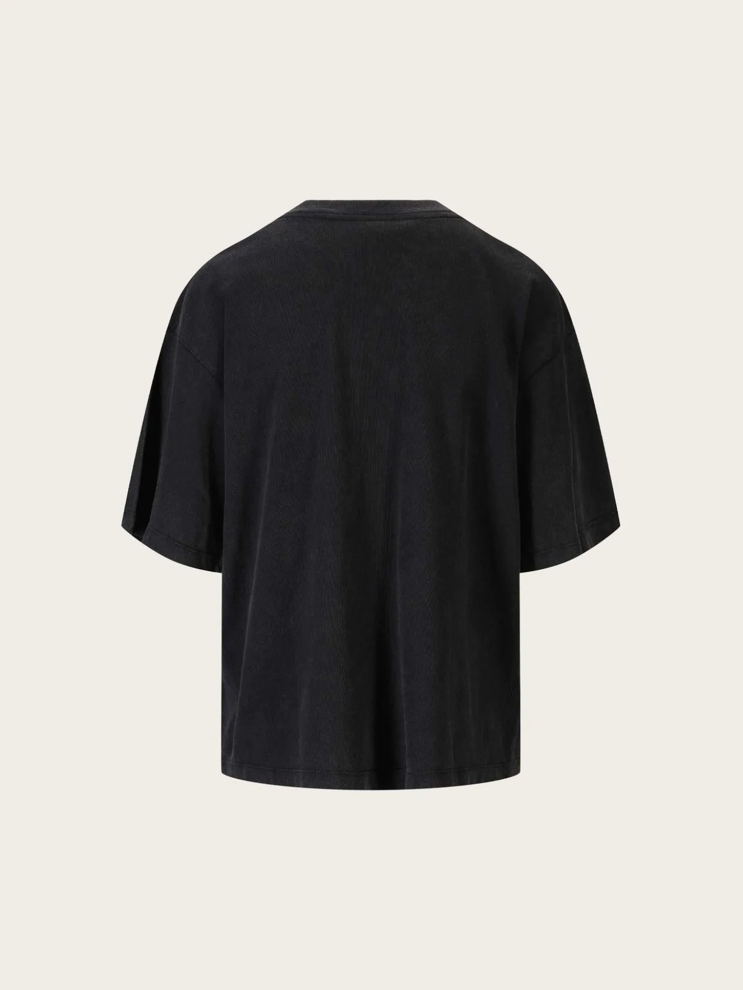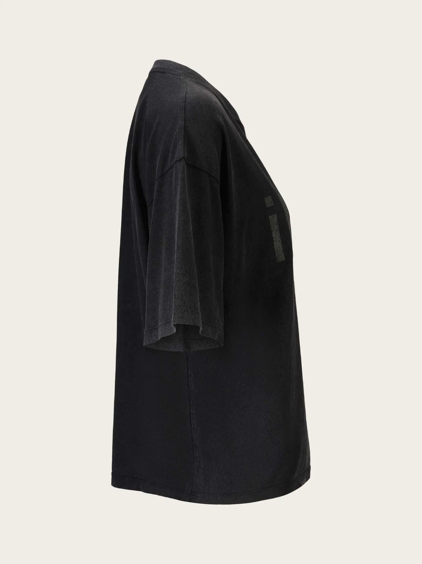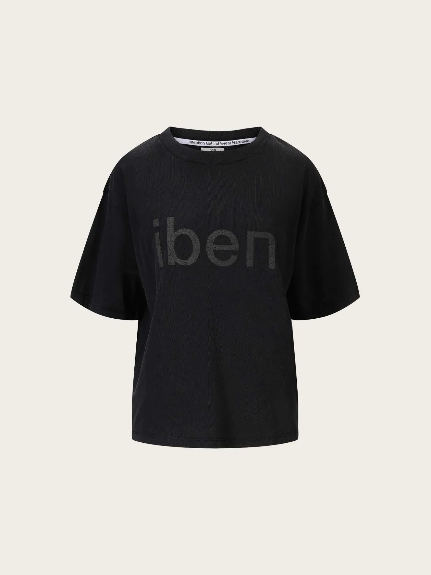 En kul og oversized t-skjorte med Iben-logo i ton i ton-farge i front. Den har rund hals, kort ermer og en rett og løs passform.