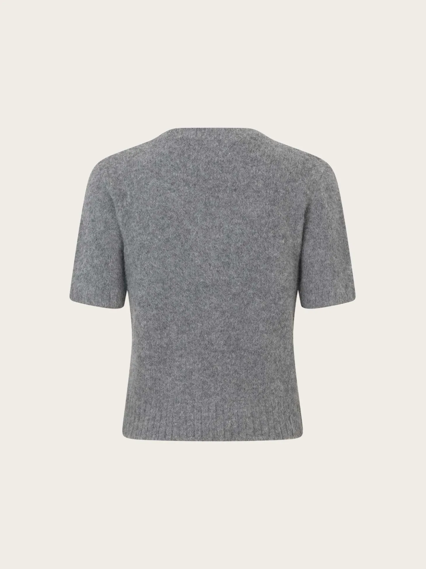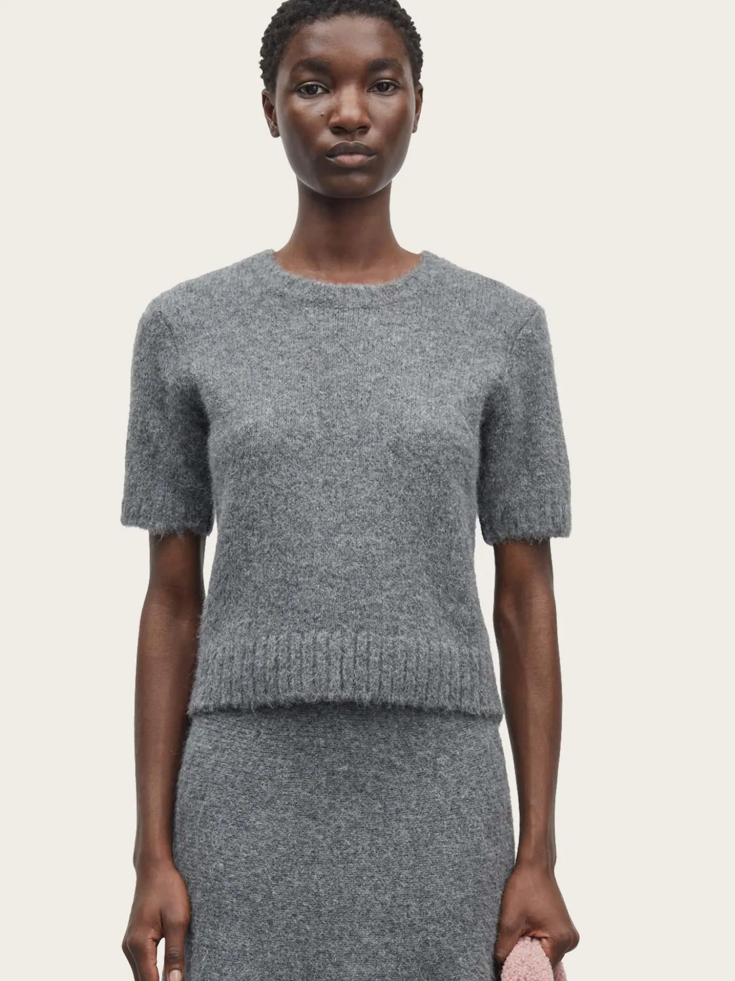 En nydelig myk strikk med korte ermer og rund hals. Den har en rett passform, og passer perfekt inn i basegarderoben!