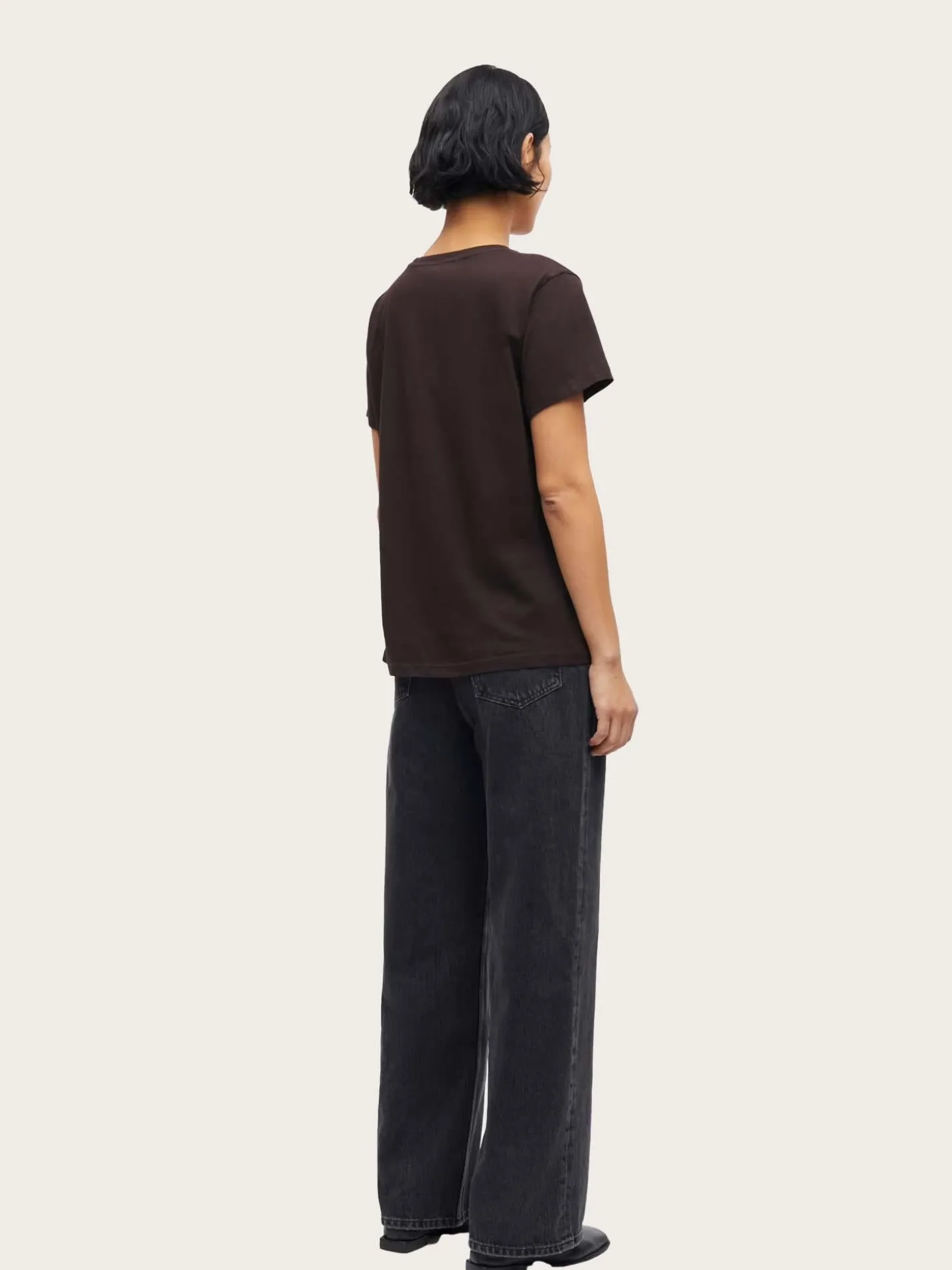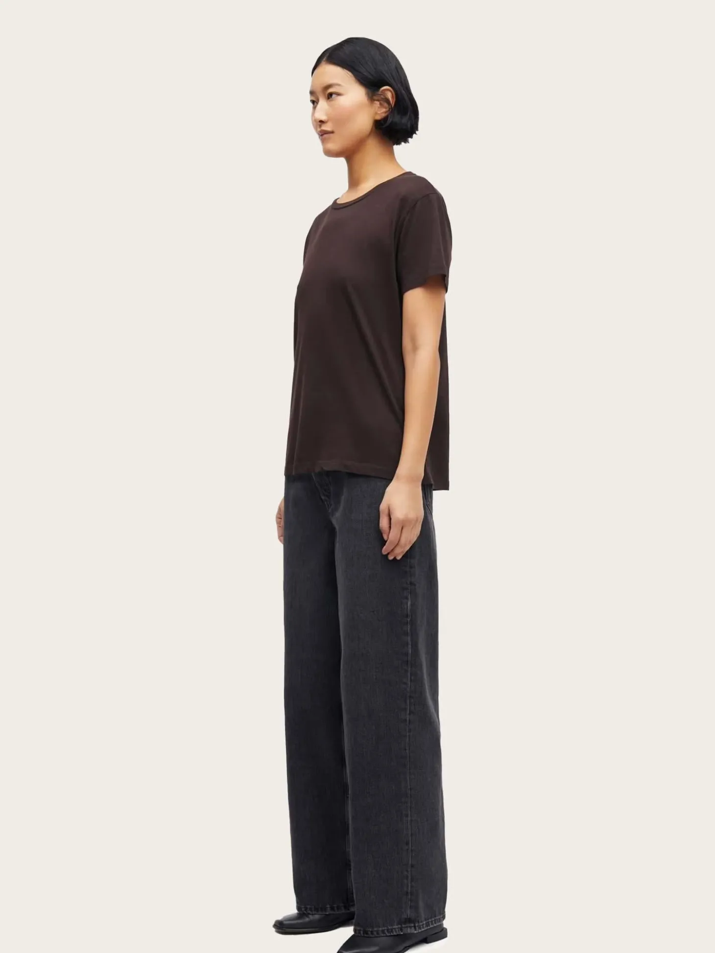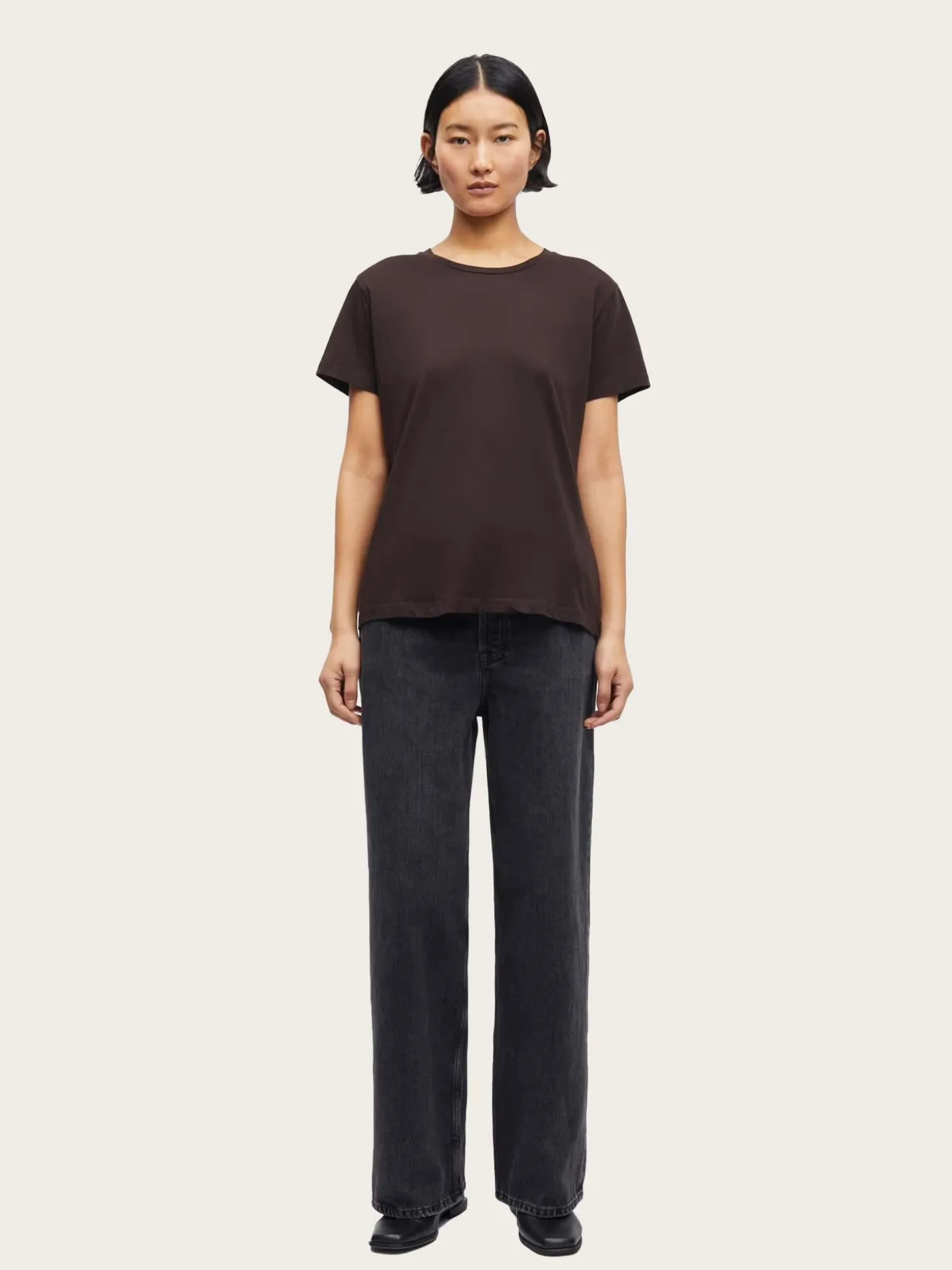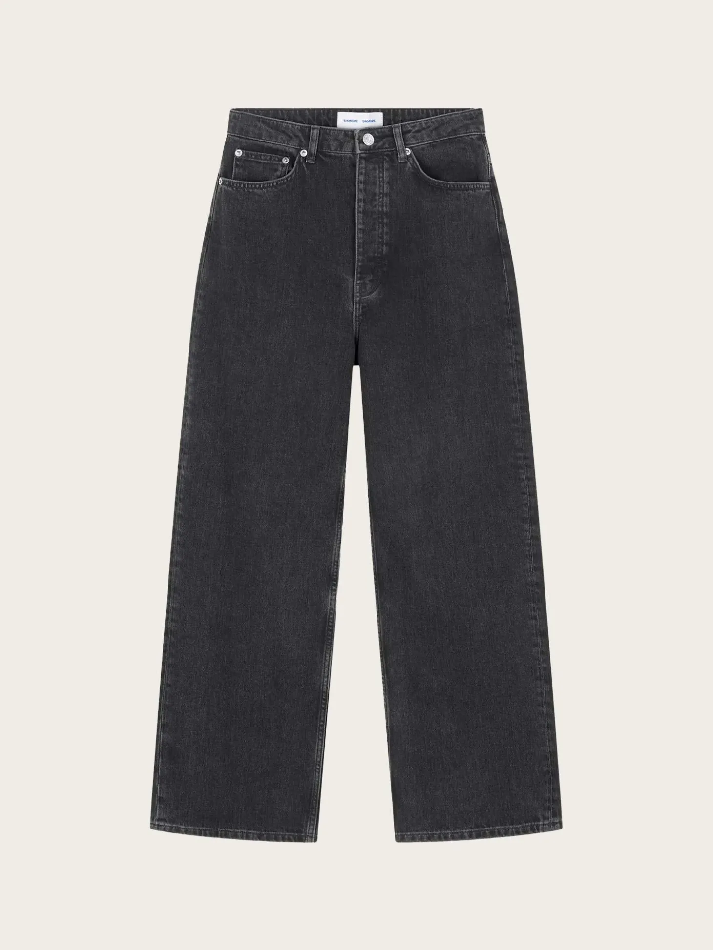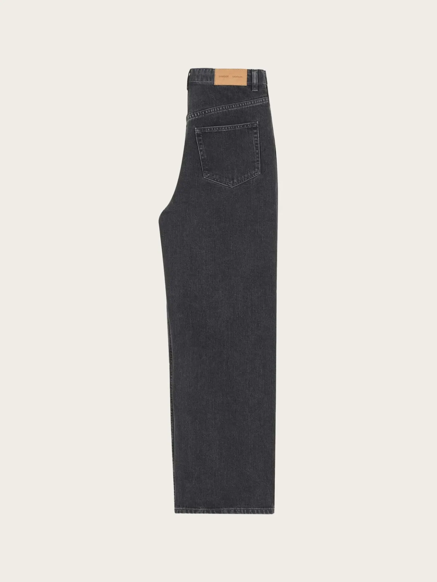 Løstsittende mørk jeans med lav midje og vide, rette ben. Buksen er en fem lommers modell.
