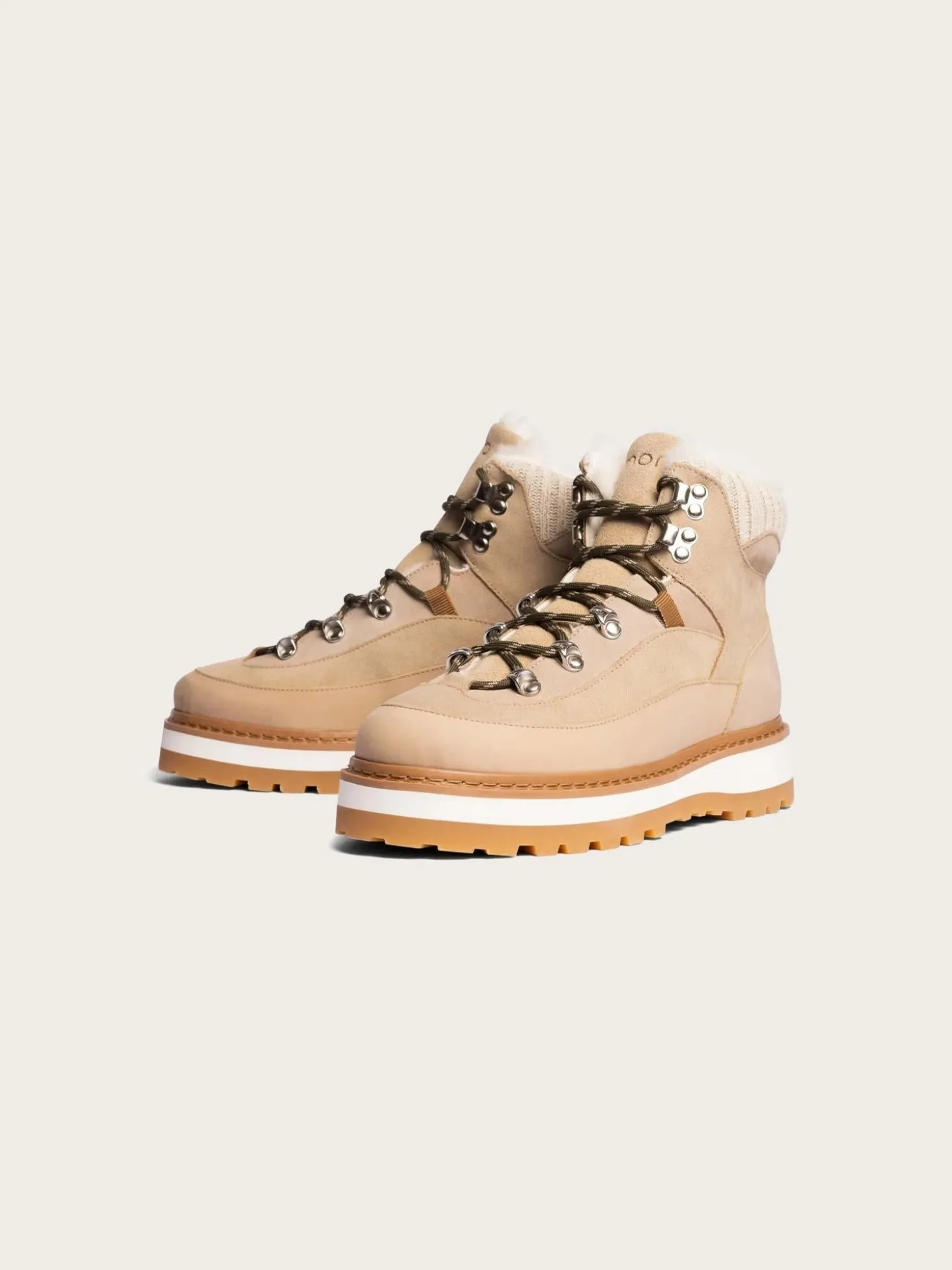 En ny favoritt-modell fra det norske merket. Den har lammeforing inni, snøring, er ankelhøy og har god såle. Ton i ton-lisser medfølger. Mono er håndlaget i Portugal, med italienske kvalitets-materialer.