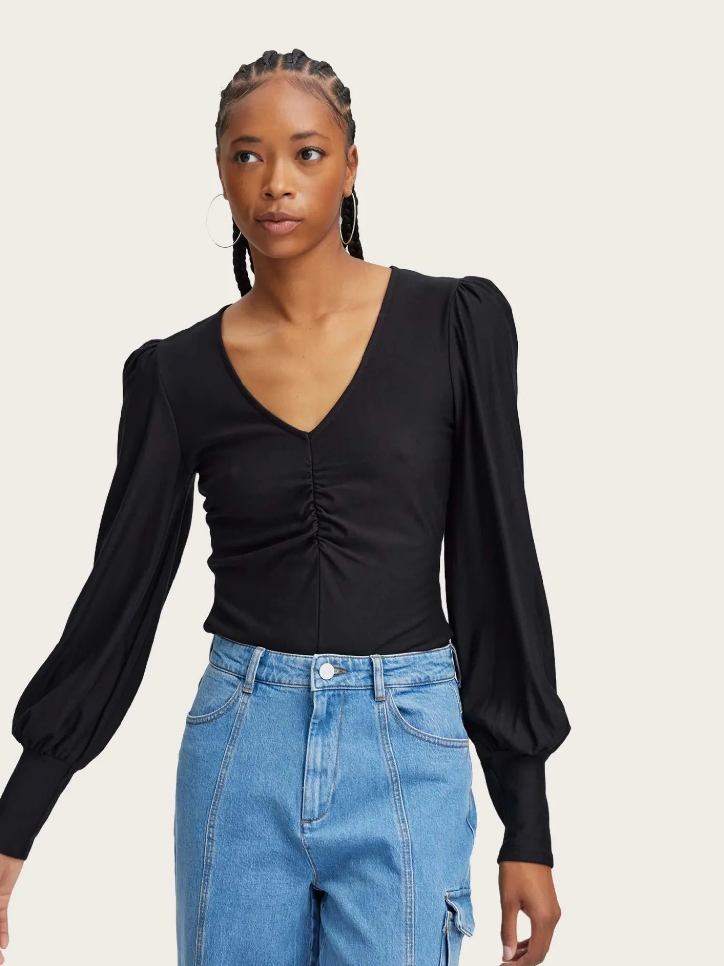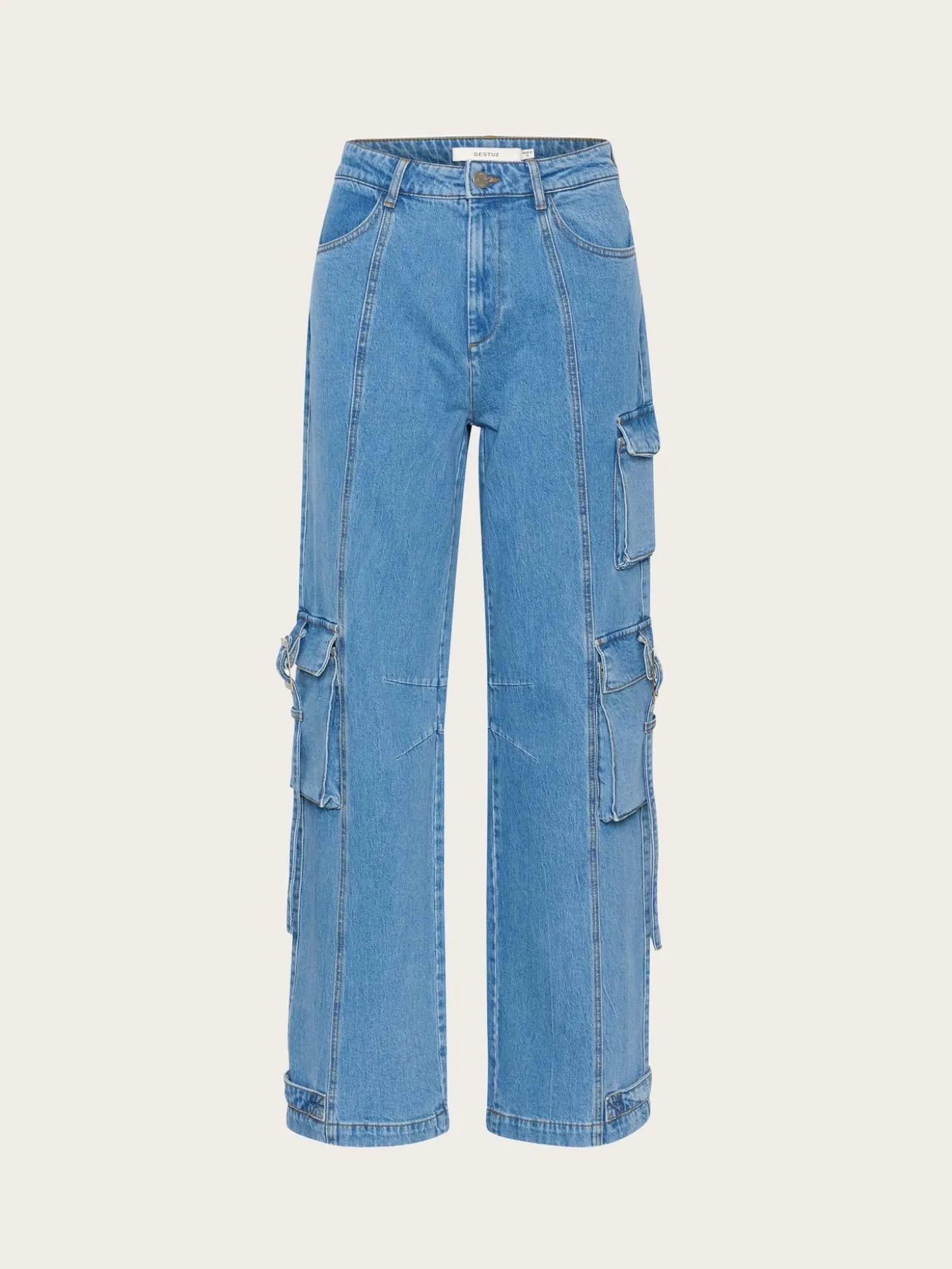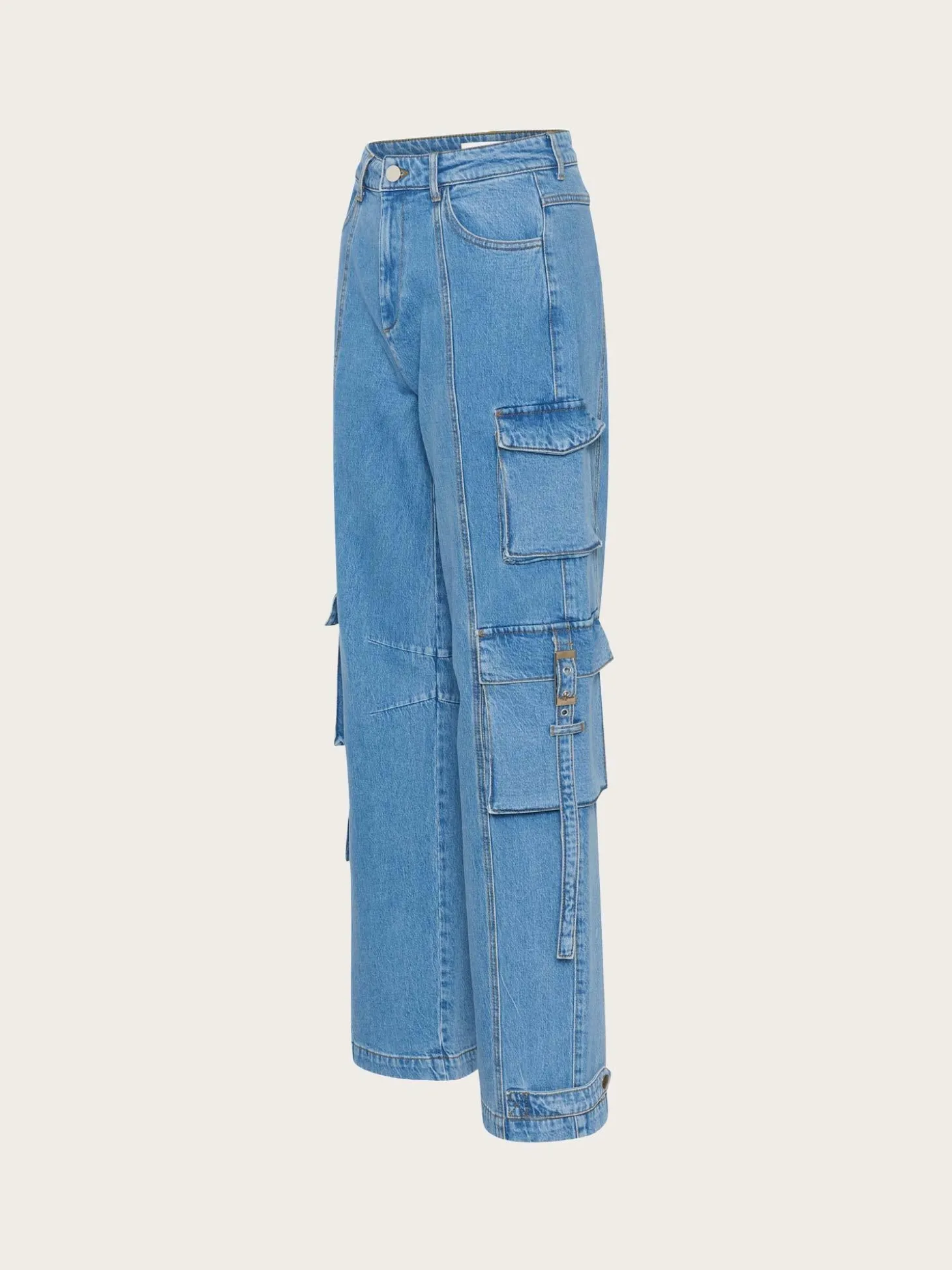 Cargo-jeans laget av høykvalitets denim. Jeansen er midwaist, med full lengde på beina, for en komfortabel og avslappet look.